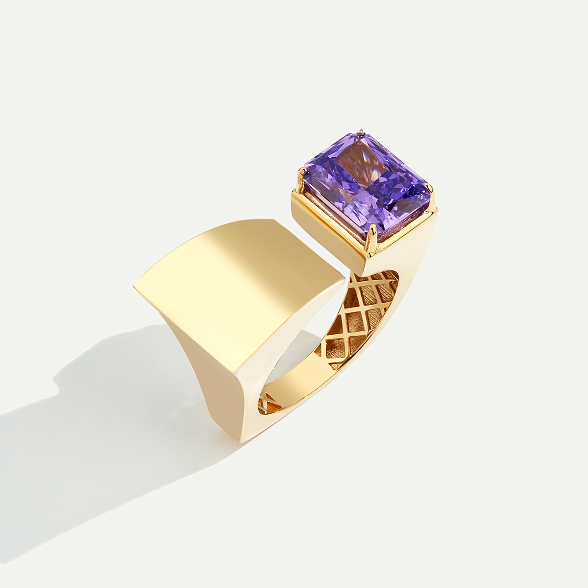 14 Ayar Altın Açık Formlu Mor Taşlı Yüzük