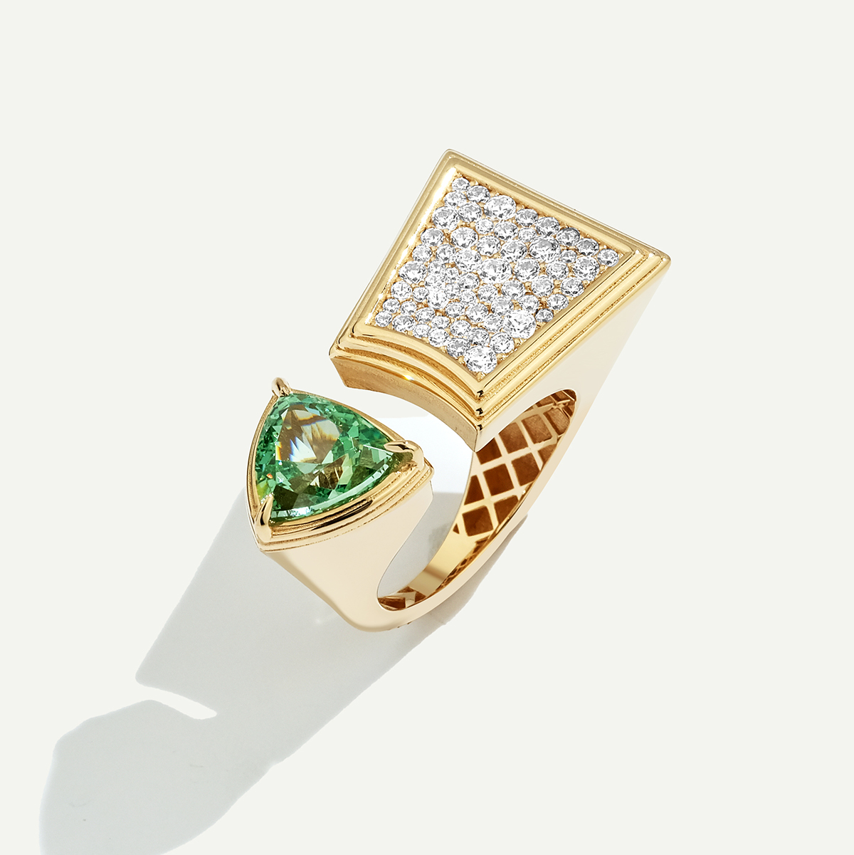 14 Ayar Altın Açık Formlu Yeşil Taşlı Yüzük