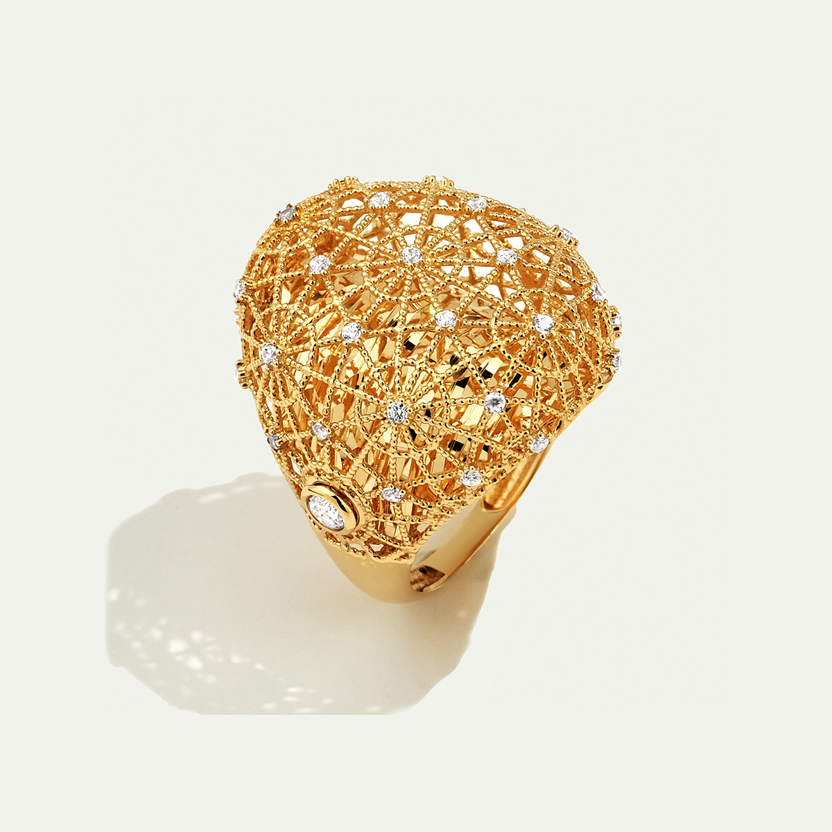 14 Ayar Altın Ajurlu Taşlı Yüzük