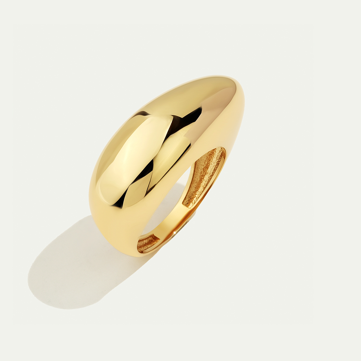 Minimalist çizgilerin zarafetini taşıyan bu 14 ayar altın yüzük, bombeli tasarımıyla hem güçlü hem de sade bir görünüm sunar. Parlak altın yüzeyi, modern ve zamansız bir şıklık yaratır. Günlük kombinlerden özel davetlere kadar her ortamda kullanılabilecek, tek başına dikkat çekici ya da farklı yüzüklerle kombinlenebilecek şık bir tamamlayıcıdır.