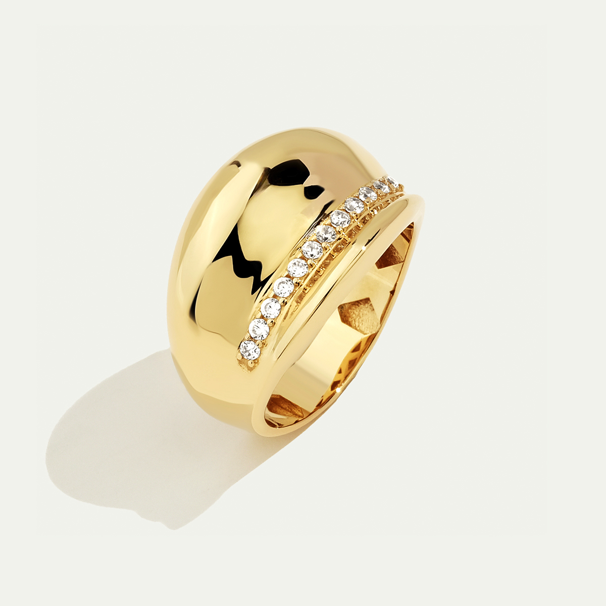 14 Ayar Altın Bombeli SıralıTaşlı Yüzük