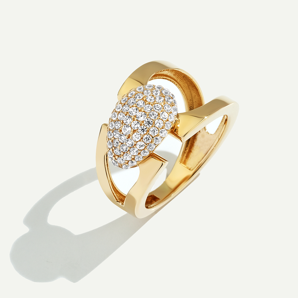 14 Ayar Altın Bombeli Taşlı Yüzük
