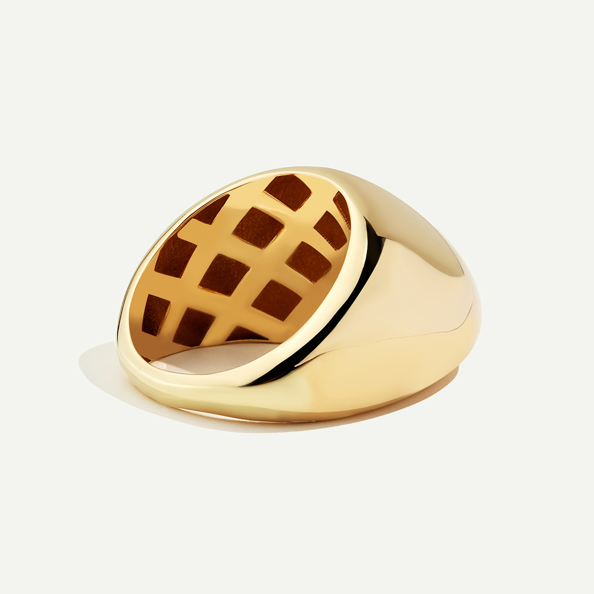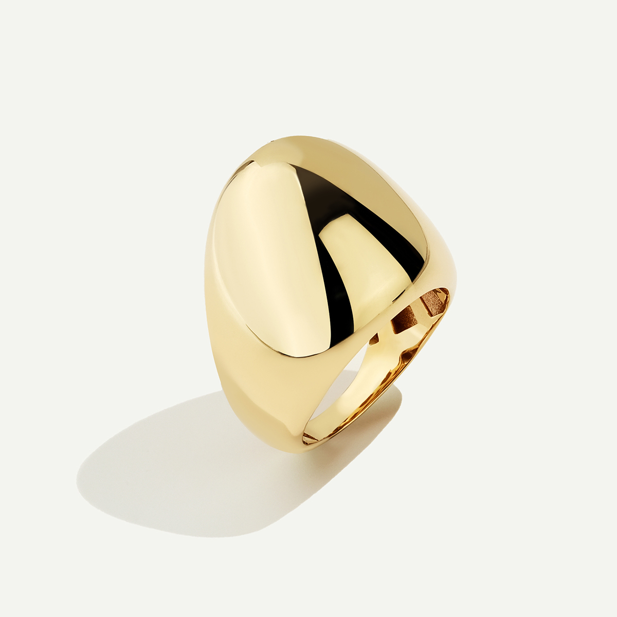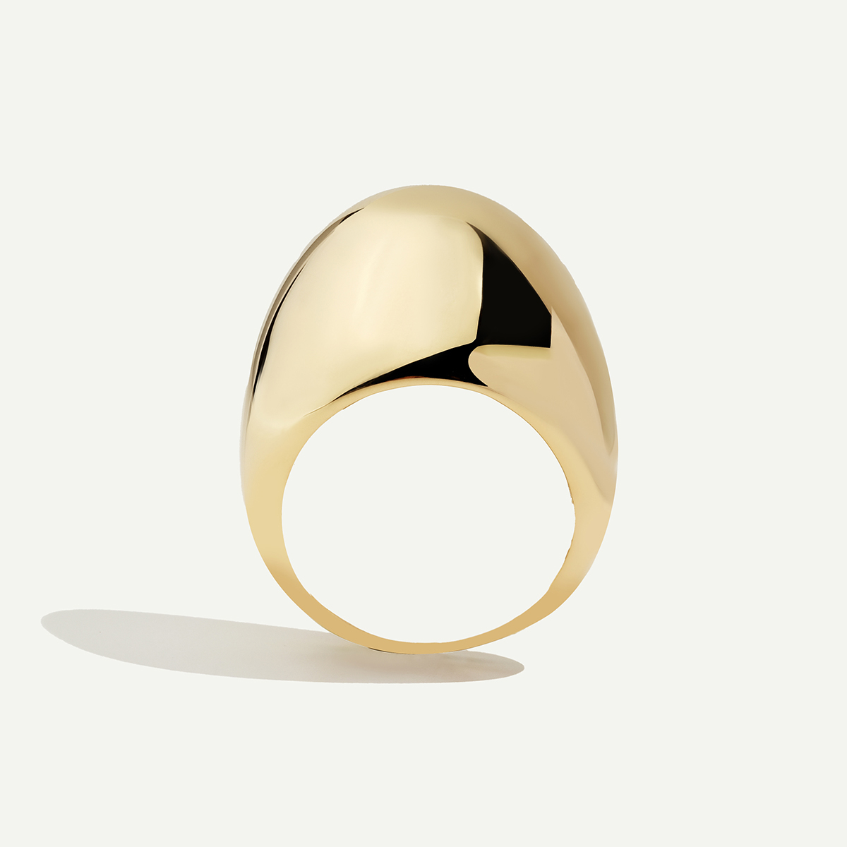 Akıcı ve pürüzsüz yüzeyiyle zamansız bir şıklık sunan bu tasarım, modern çizgileriyle öne çıkar. Minimal formuna rağmen güçlü bir etki yaratan yüzük, 14 ayar altının zarif ışıltısıyla günlük ve özel stillere uyum sağlar