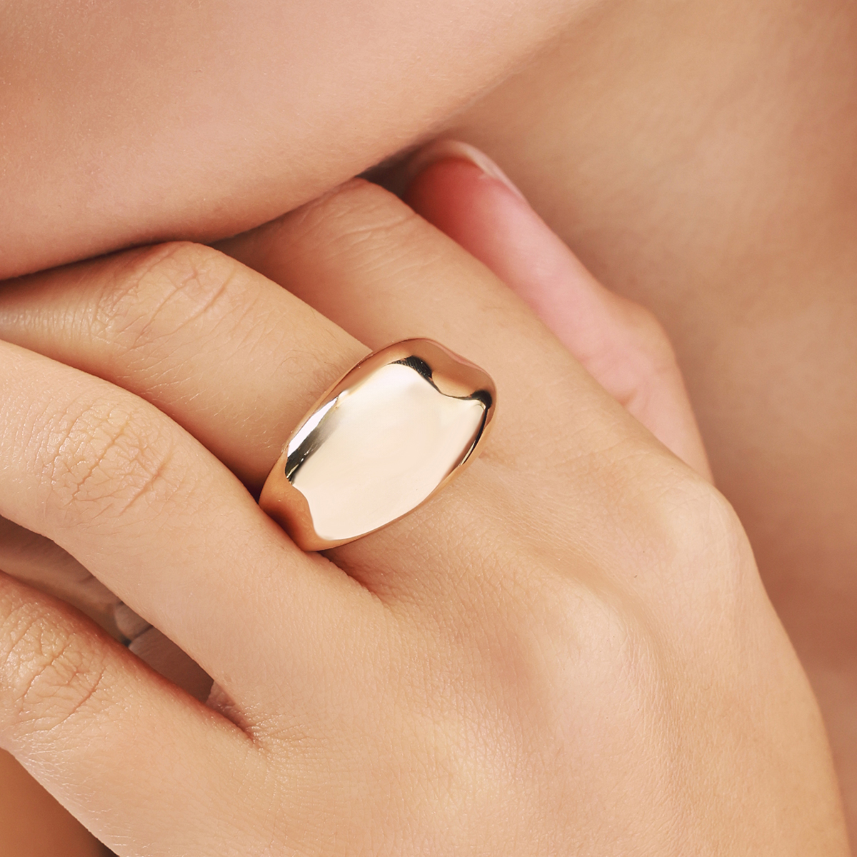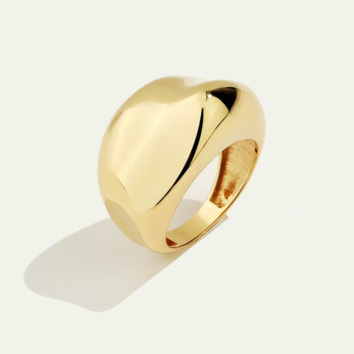 Sade ve güçlü formuyla öne çıkan 14 Ayar Altın Bombeli Yüzük, bombeli yapısıyla parmağa modern bir hava katar. Minimal tasarımı sayesinde hem günlük hayatta hem de özel davetlerde kolayca kombinlenebilir. Altının zarif parlaklığıyla birleşen kusursuz formu, zamansız ve sofistike bir şıklık sunar. Tek başına stil sahibi bir ifade yaratırken, farklı yüzüklerle kombinlendiğinde modern bir bütünlük sağlar.