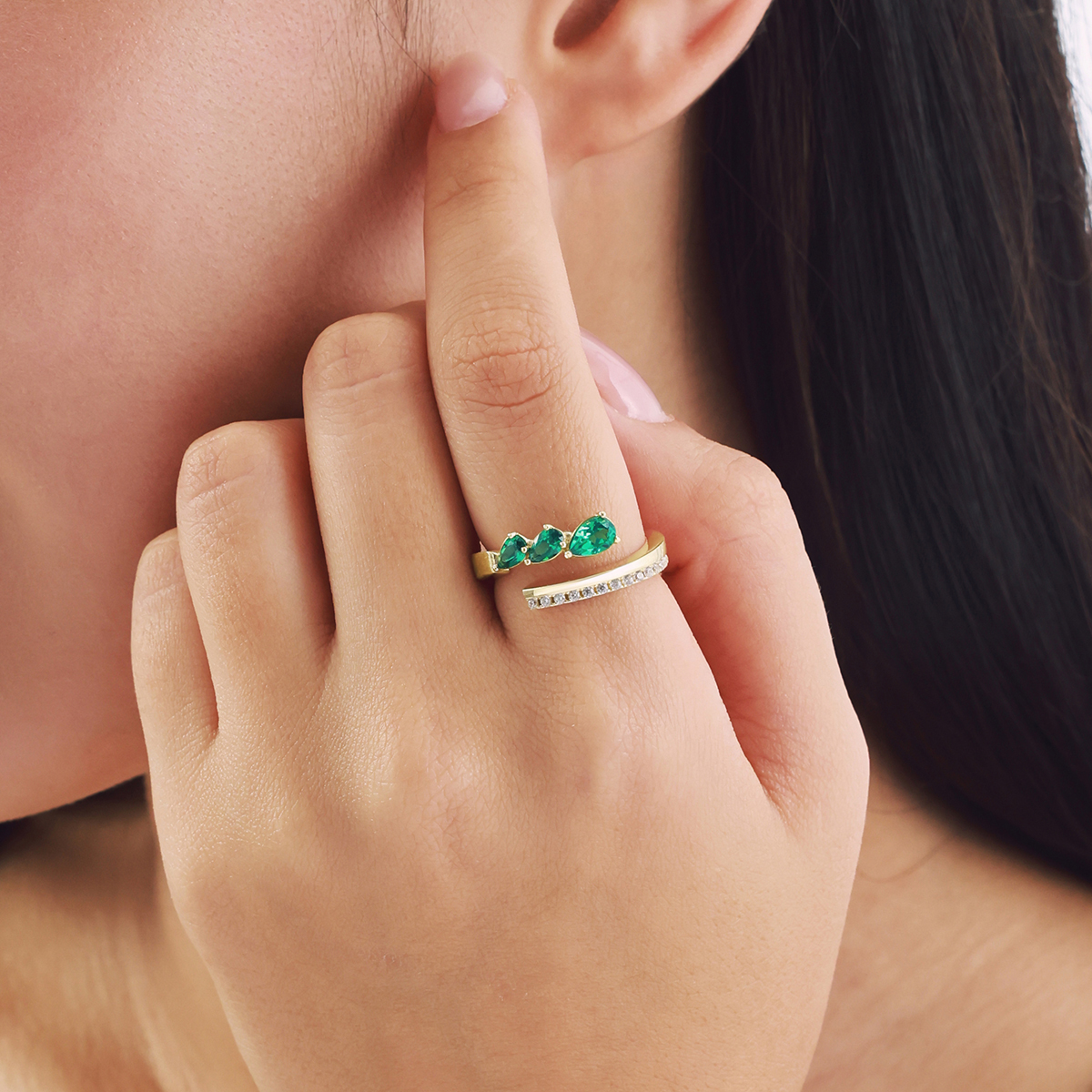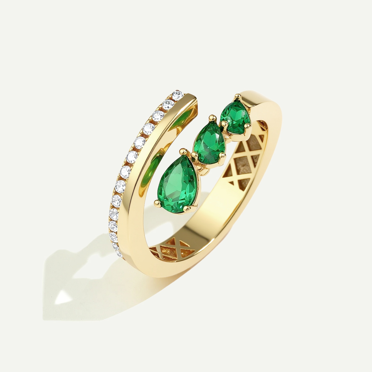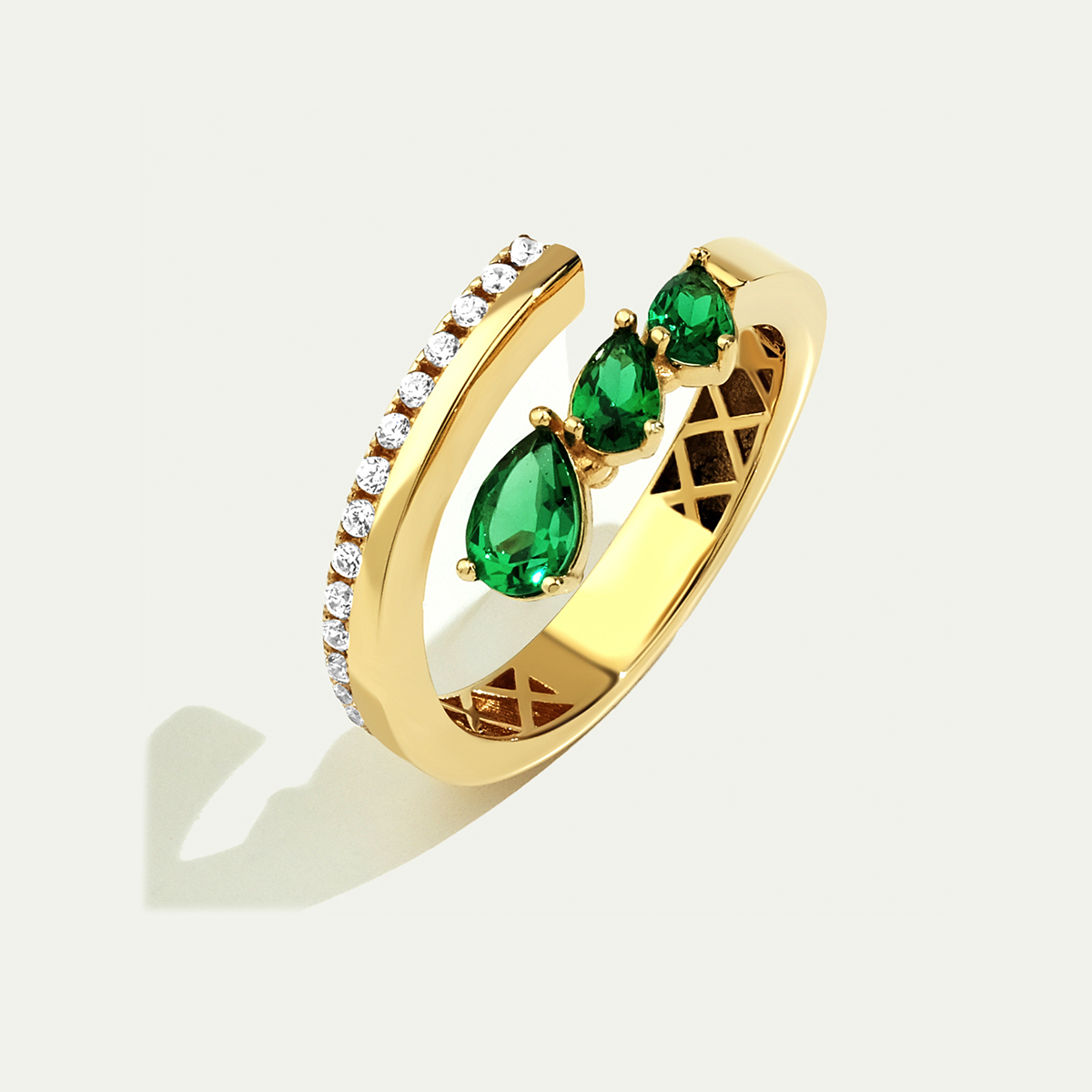 14 Ayar Altın Damla Formlu Yeşil Taşlı Yüzük