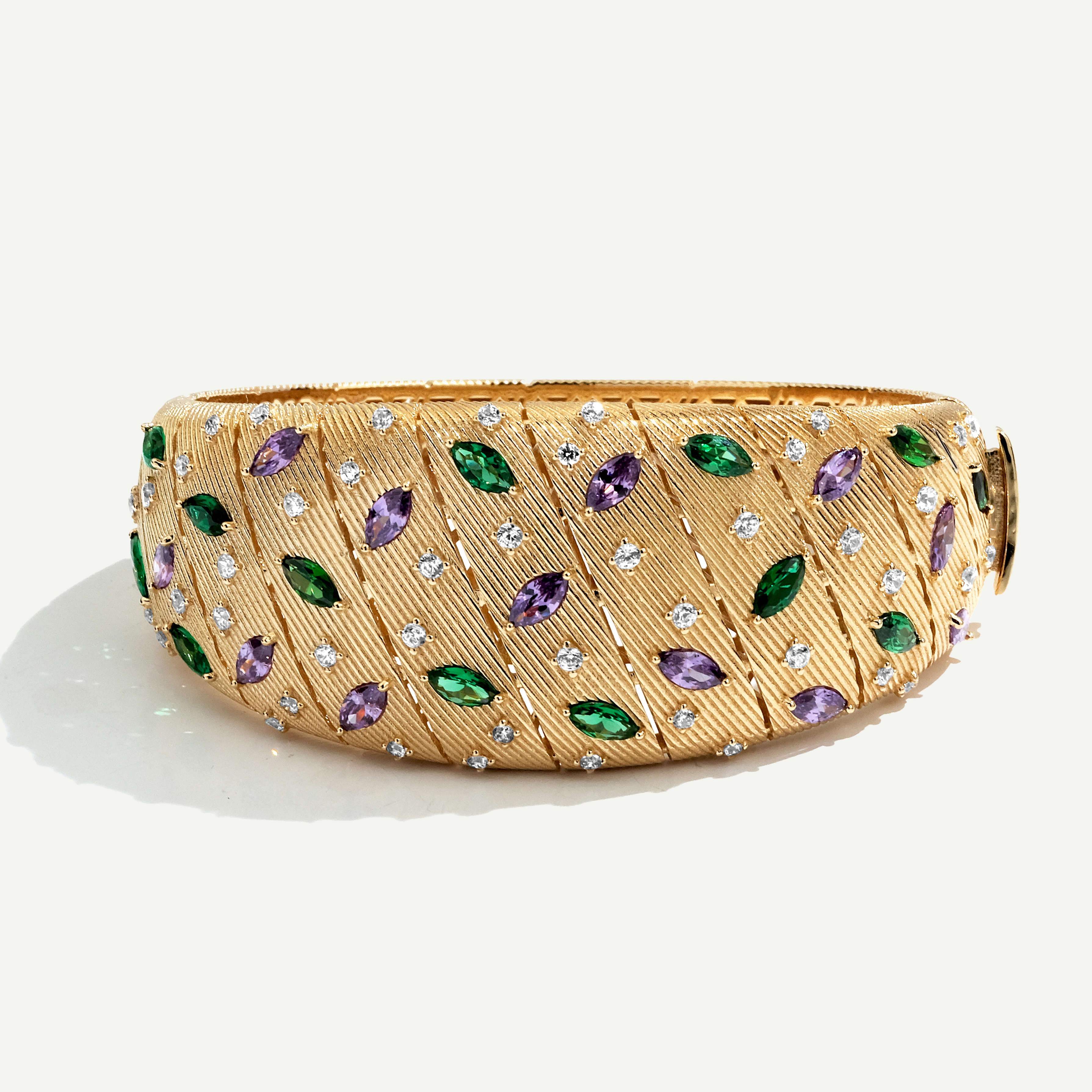 Baget 14 Ayar Altın Mor ve Yeşil Taşlı Kelepçe Baget 14 Ayar Altın Mor ve Yeşil Taşlı Kelepçe