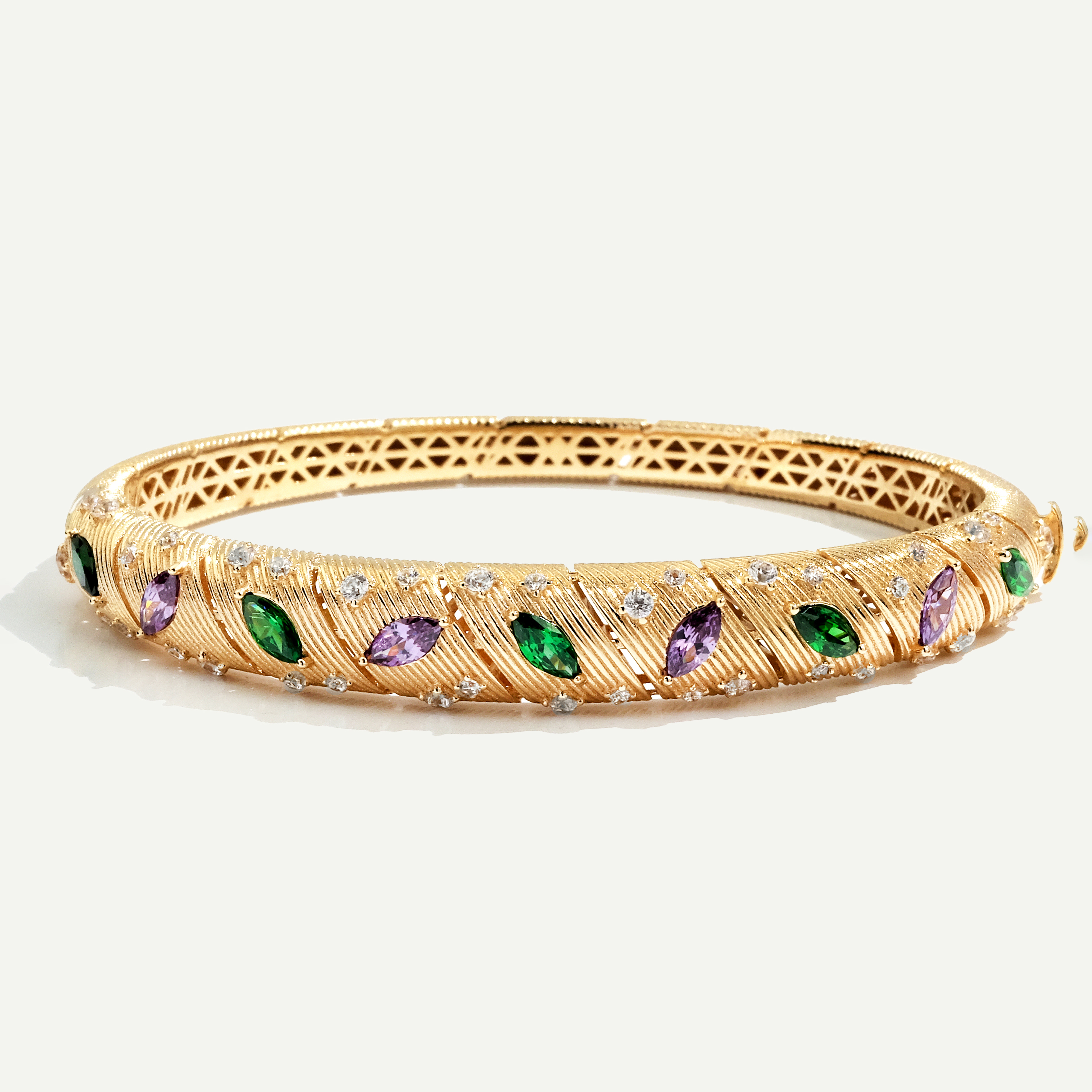 Vega 14 Ayar Altın Mor ve Yeşil Taşlı Kelepçe Vega 14 Ayar Altın Mor ve Yeşil Taşlı Kelepçe