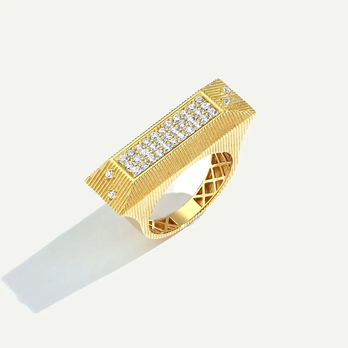 14 Ayar Altın Fırçalı Yüzeyli Pavé Taşlı Yüzük