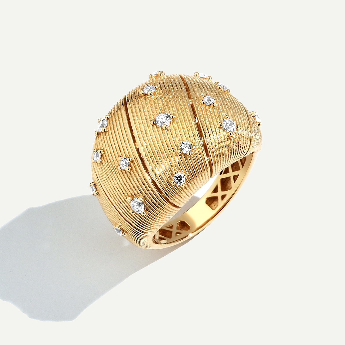 14 Ayar Altın Fırçalı Yüzeyli Taşlı Yüzük