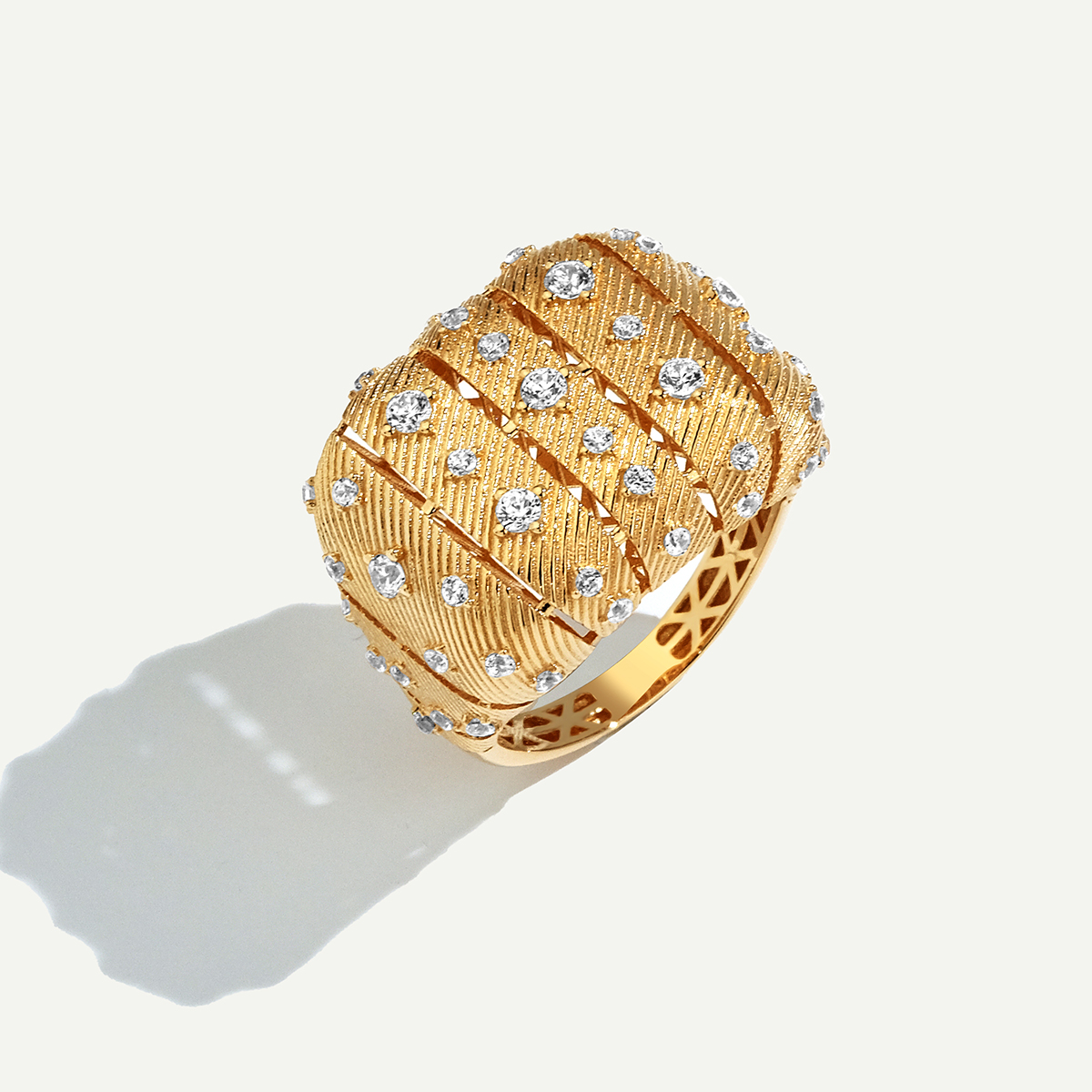 14 Ayar Altın Fırçalı Yüzeyli Taşlı Yüzük