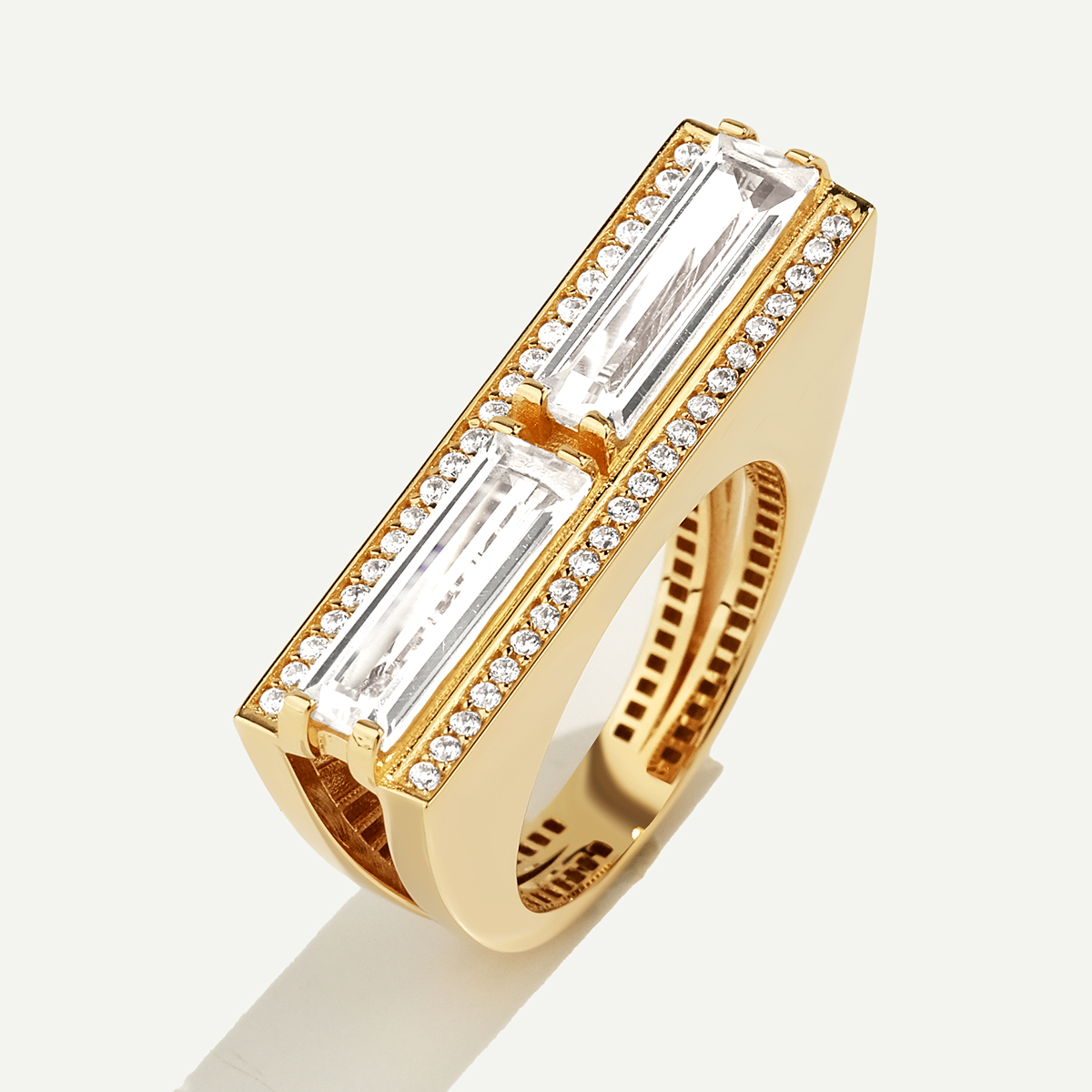 14 Ayar Altın İkili Baget Taşlı Yüzük