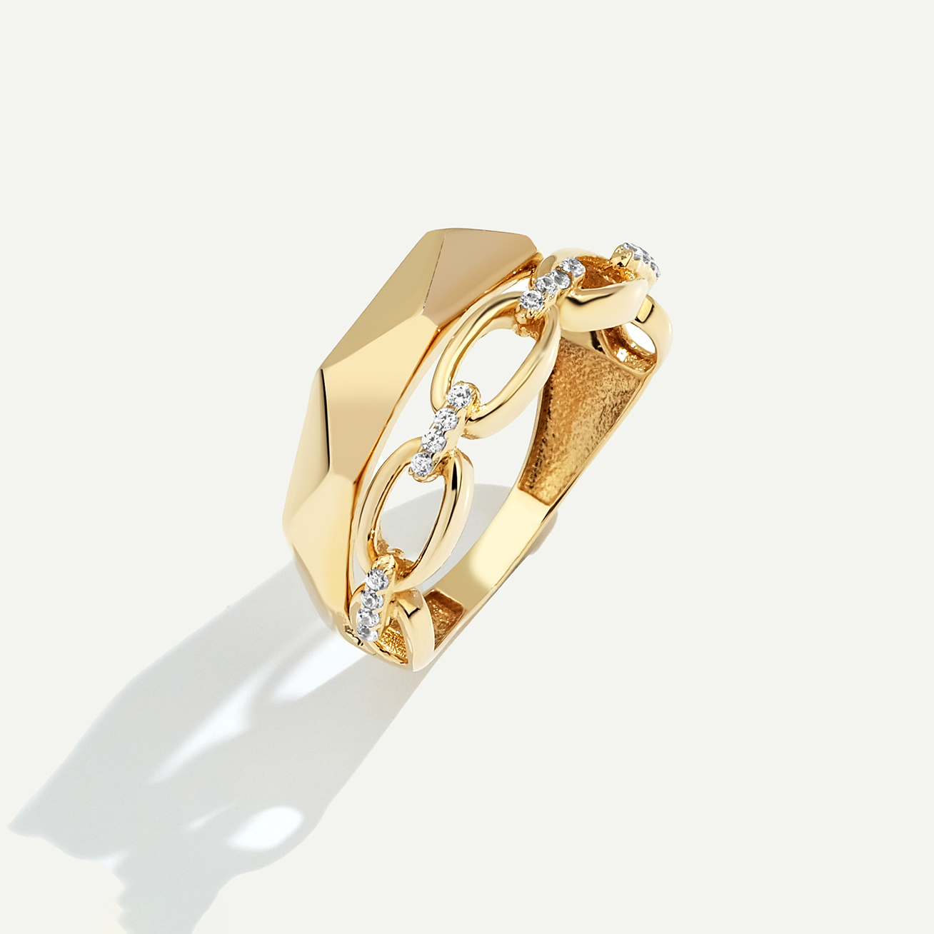 14 Ayar Altın İkili Görünümlü Taşlı Yüzük