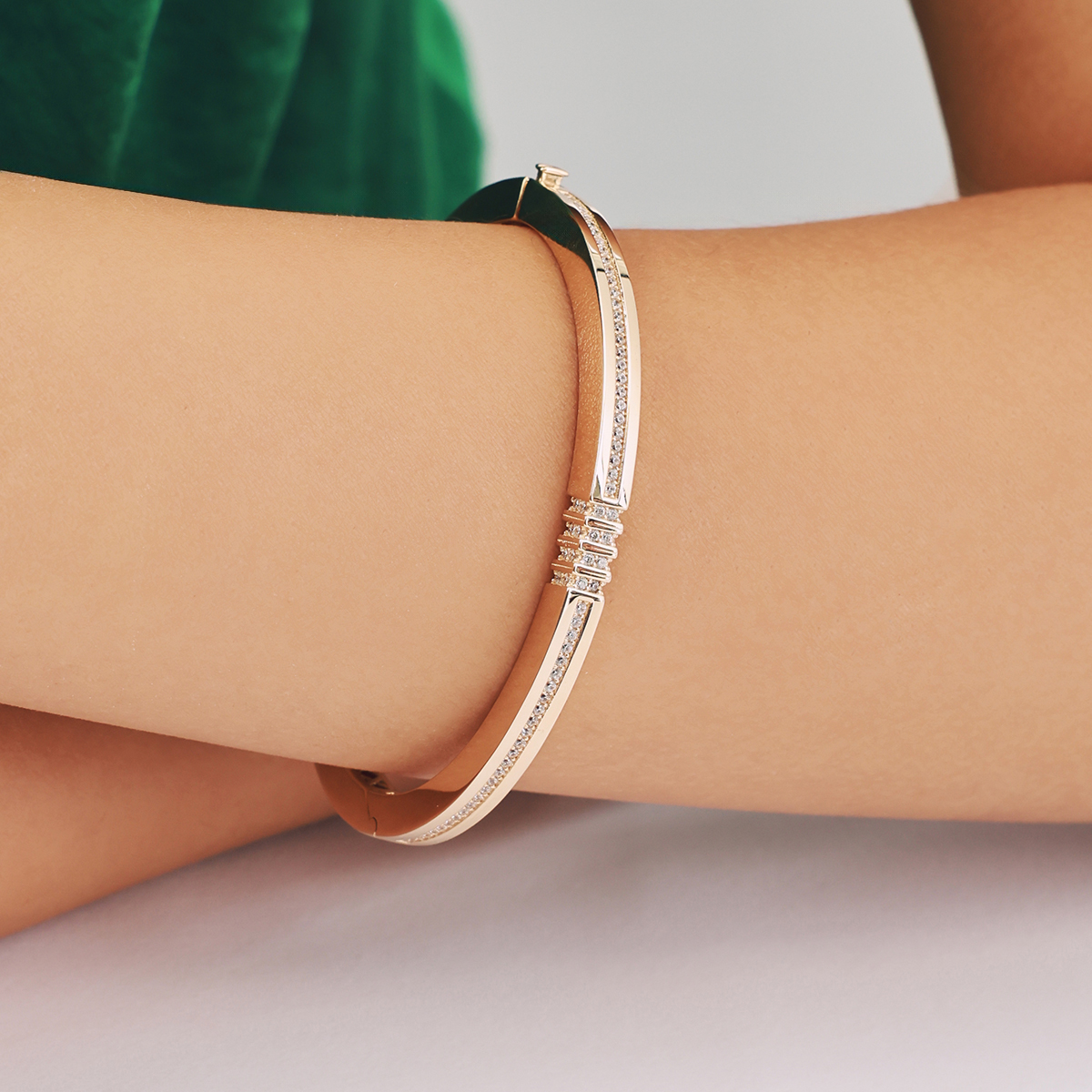 Şıklığı ve sadeliği bir araya getiren bu 14 Ayar Altın İnce Taşlı Kelepçe, zarif taş sıralarıyla bileğe ışıltılı bir dokunuş yapıyor. İnce formu sayesinde hem günlük kullanımda hem de özel günlerde kolayca tercih edilebilecek modern bir tasarım. Orta kısmındaki üçlü taş detayı ise klasik çizgiye sofistike bir vurgu katıyor.