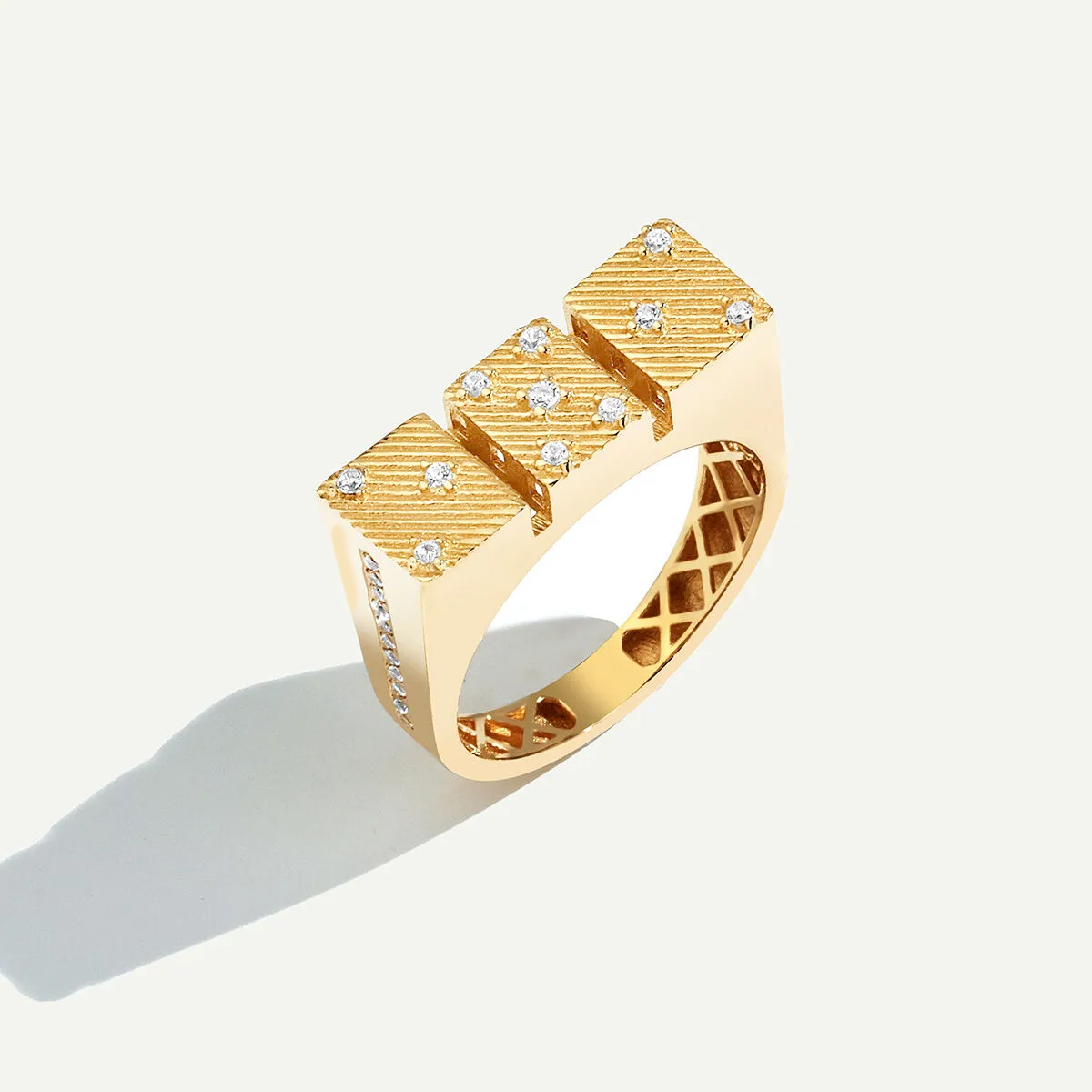 14 Ayar Altın Kare Formlu Taşlı Yüzük
