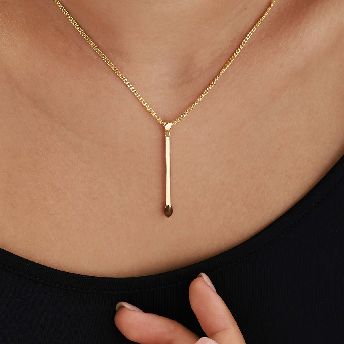 Zarif bir minimalizmi yansıtan 14 Ayar Altın Kibrit Tasarım Kolye, ince formu ve ucundaki kahverengi mineli detayla modern bir şıklık sunar. 14 ayar altından üretilen gurmet zincir, 45 cm uzunluğu ve 4 gram ağırlığıyla zarif bir duruş sunar. Parlak altın gövdesi, minenin sıcak tonuyla kontrast oluşturarak tasarıma özgün bir karakter kazandırır. Günlük kullanımlarda sade ama etkileyici bir tamamlayıcı olan bu kolye, detaylara önem veren zarif stiller için ideal bir parçadır. Regold logolu özel kutusunda ve garanti belgesiyle birlikte sunulmaktadır.