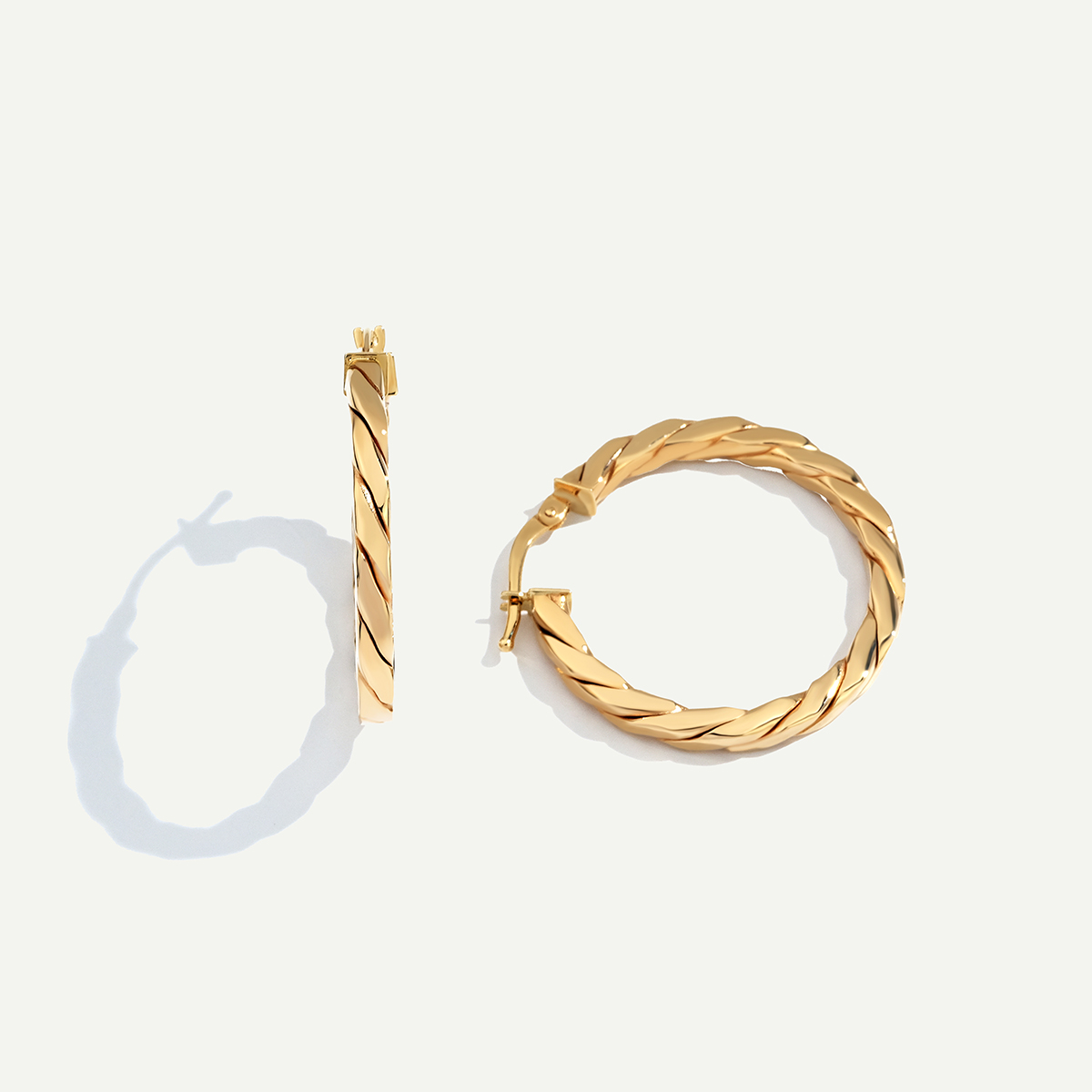 14 Ayar Altın Köşeli Burgu Halka Küpe