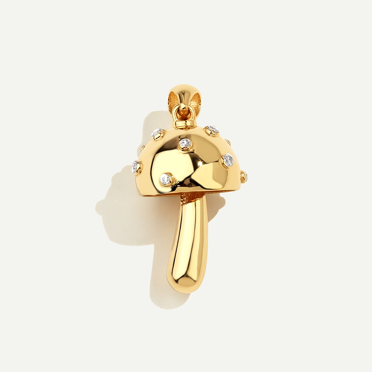 Doğadan ilham alan tasarımıyla öne çıkan 14 Ayar Altın Mantar Figürlü Taşlı Kolye Ucu, zarif işçiliği ve sevimli formuyla stilinize özgün bir dokunuş katar. Parlak taş süslemeleri ile ışıldayan bu özel parça, günlük kullanıma olduğu kadar özel anlara da uyum sağlar. Regold logolu özel kutusunda ve garanti belgesiyle sunulmaktadır.