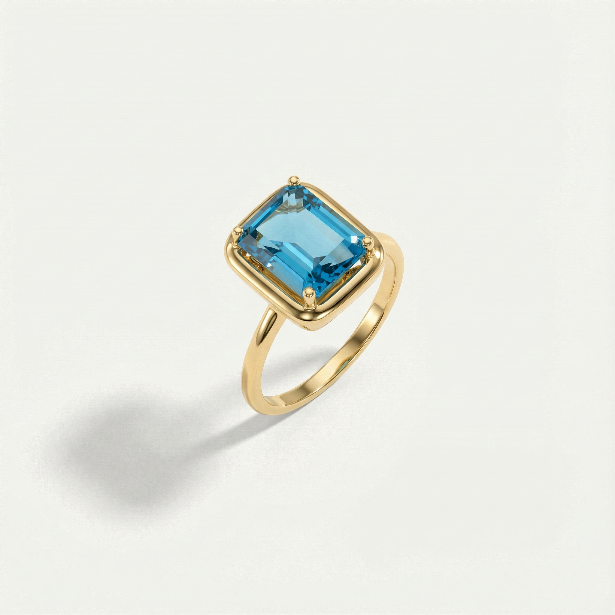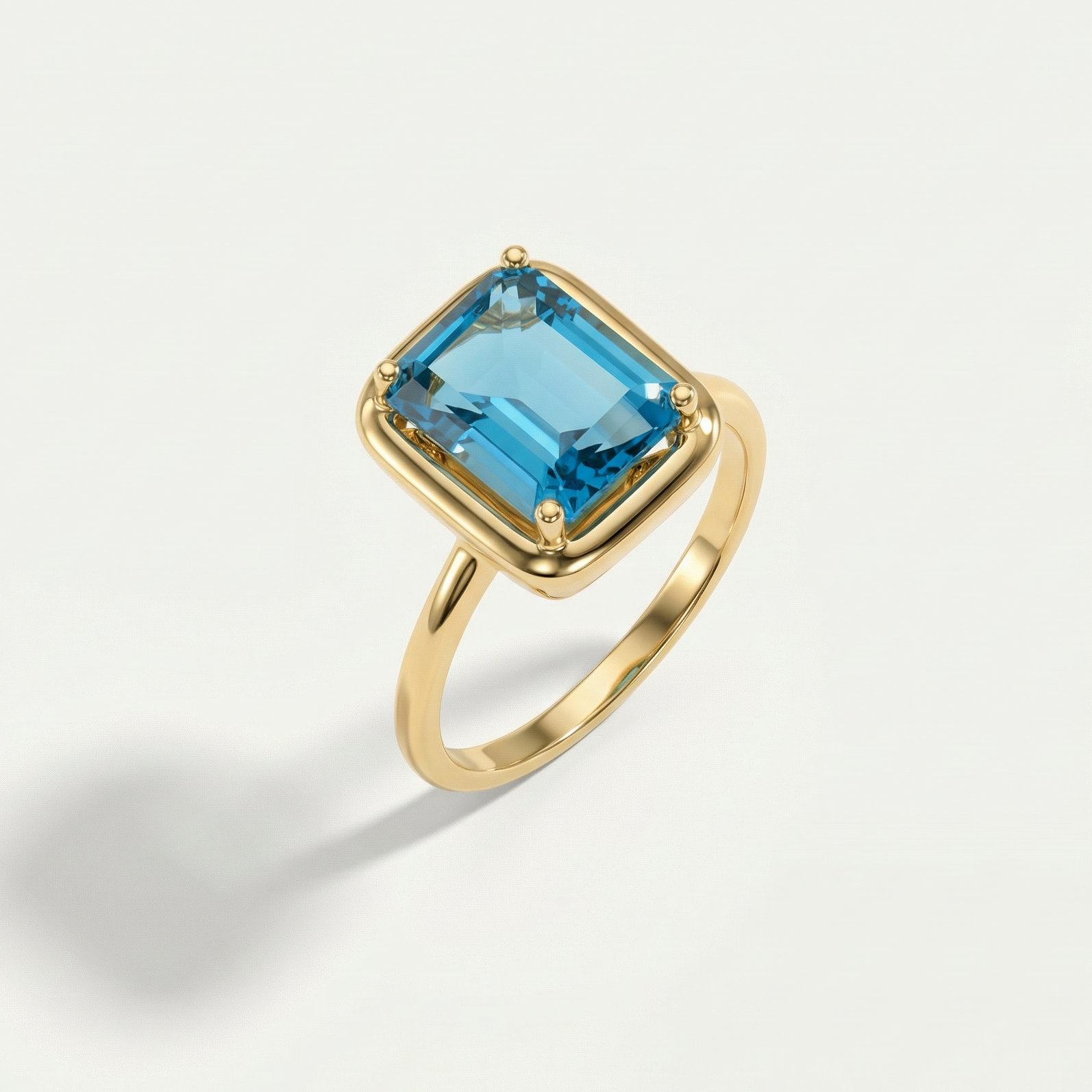 14 Ayar Altın Mavi Taşlı Yüzük, canlı mavi taşıyla göz alıcı bir ışıltı sunar. Renkli ve modern stil arayışında olanlar için ideal bir tercihtir.