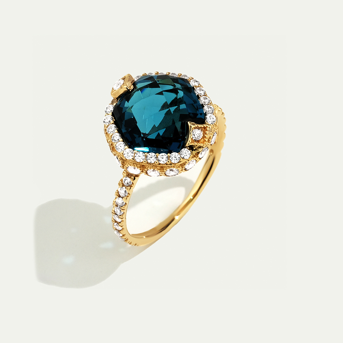 14 Ayar Altın Mavi Taşlı Yüzük
