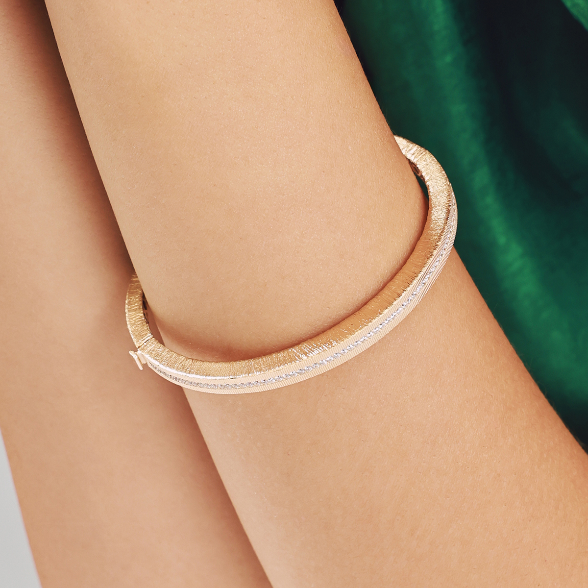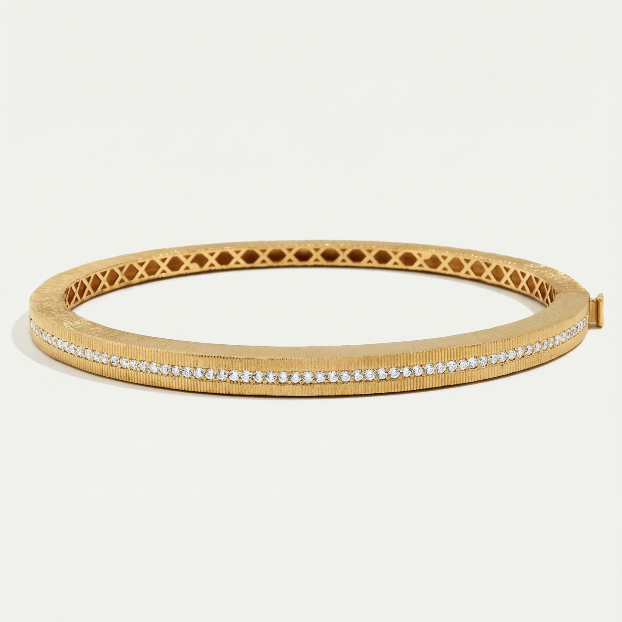 Zarif ve modern çizgileriyle öne çıkan 14 Ayar Altın Minimal Mat Yüzeyli Taşlı Kelepçe, bileğinizi çevreleyen taşlı şeridiyle göz alıcı bir parıltı sunuyor. Mat dokulu altın yüzey, incelikle işlenmiş taş dizilimiyle mükemmel bir uyum yakalıyor. Şıklığınızı tamamlayacak özel bir aksesuar.