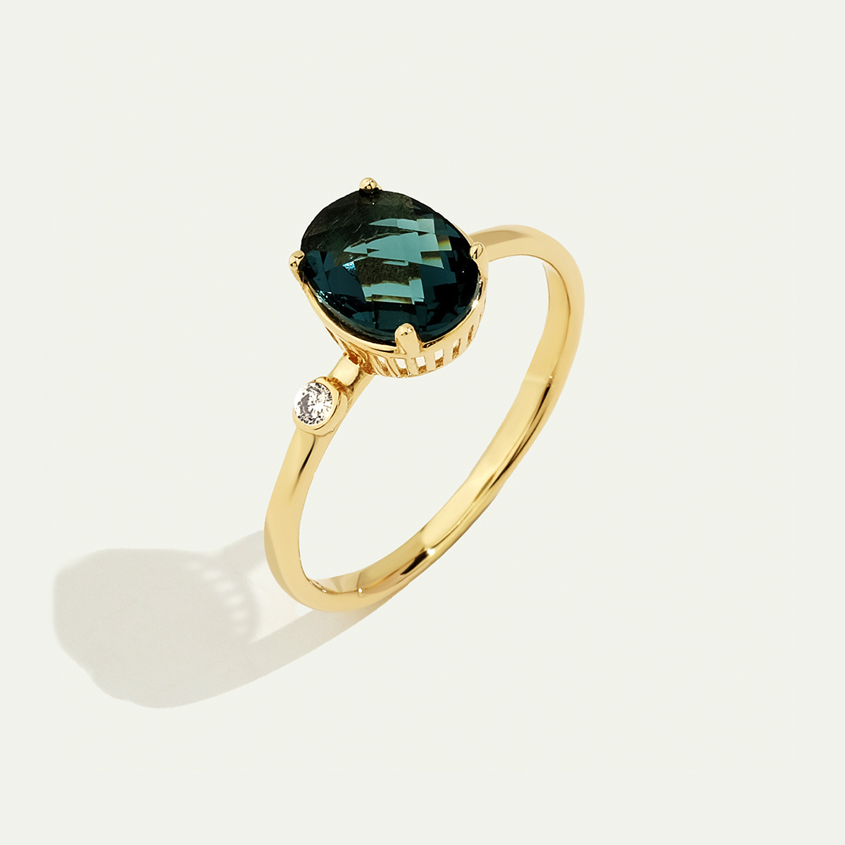 14 Ayar Altın Minimal Mavi Taşlı Yüzük
