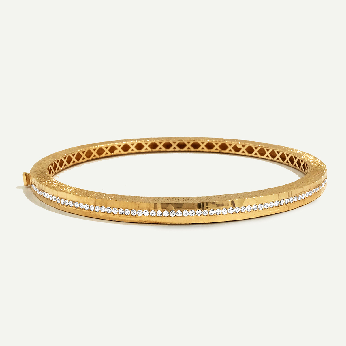 Zarif ve ince tasarımıyla öne çıkan 14 Ayar Altın Minimal Parlak Yüzeyli Taşlı Kelepçe, zarafeti yeniden tanımlıyor. Altın zemin üzerinde tek sıra halinde sıralanmış ışıldayan taşlar, her açıdan göz alıcı bir ışıltı sunuyor. İnce ve sade formu sayesinde günlük kombinlerinizle kolaylıkla bütünleşirken özel günlerde de dikkatleri üzerinize çekiyor.