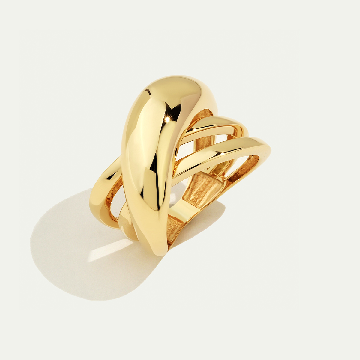 Akışkan hatların dinamizmini taşıyan bu 14 ayar altın yüzük, modern tasarımıyla göz alıyor. Üç boyutlu yapısı ve parlak yüzeyiyle hem gündüz hem de gece kombinlerinize sofistike bir dokunuş katar. Klasik çizgilerin ötesine geçen formuyla, şıklığınıza güçlü bir imza atıyor.