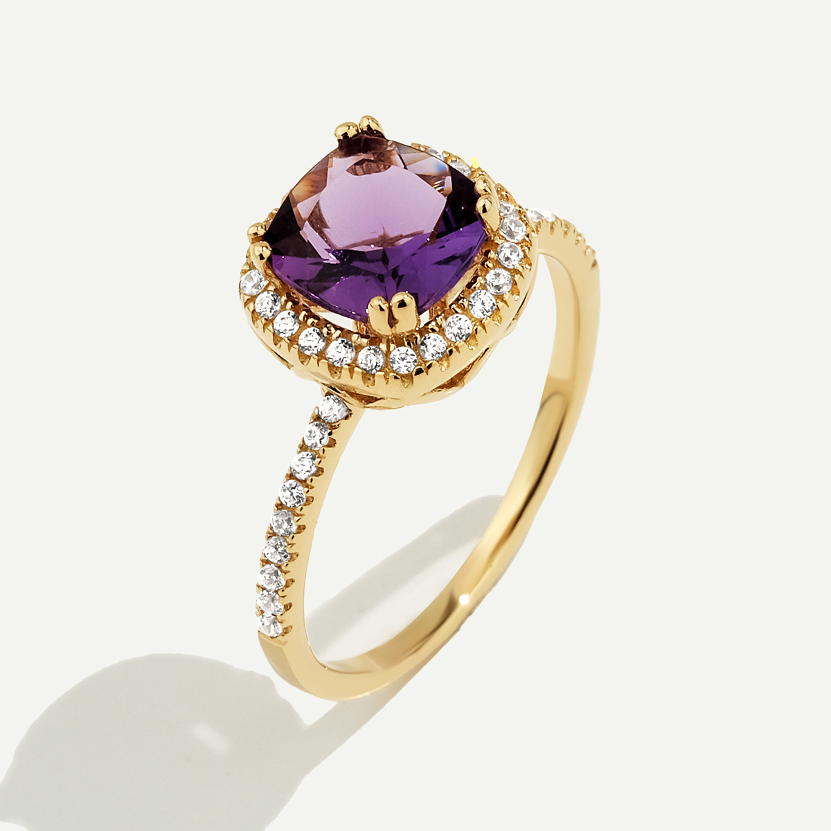14 Ayar Altın Mor Taşlı Anturaj Yüzük