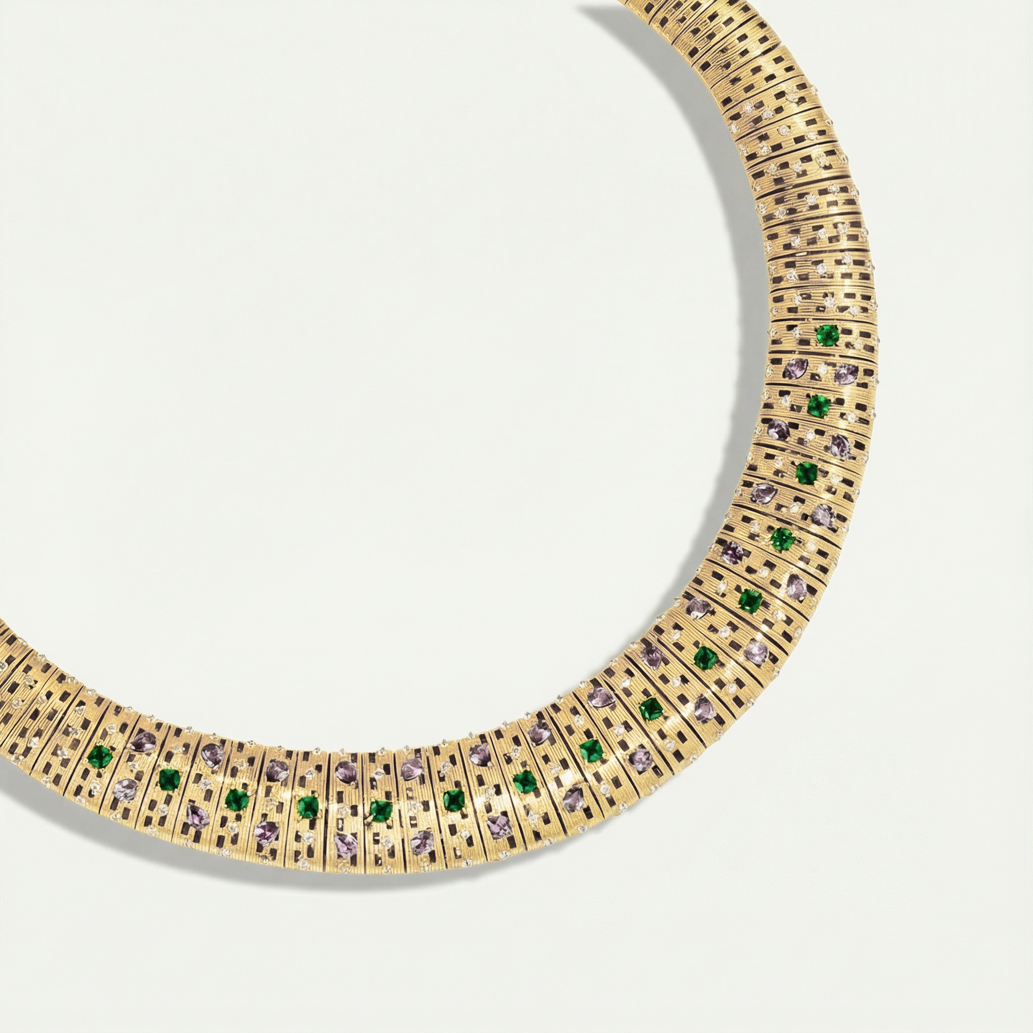 Işıltılı detaylarıyla dikkat çeken 14 Ayar Altın Mor ve Yeşil Taşlı Set, mor ve yeşil taşların zarif uyumunu altının sıcak tonuyla buluşturuyor. Kolyeden bilekliğe, küpeden yüzüğe kadar her parçada yer alan taş dizilimi tasarıma canlı bir ritim kazandırıyor. Geniş formdaki kolye ve bileklik, klasik şıklığı güçlü bir duruşla yansıtırken, küpe ve yüzükteki ince işçilik bütünlüğü tamamlıyor. Renklerin enerjisiyle sofistike bir görünüm sunan bu set, özel davetlerde gösterişli bir zarafet hissi uyandırıyor. Regold logolu özel kutusunda ve garanti belgesiyle birlikte sunulmaktadır.