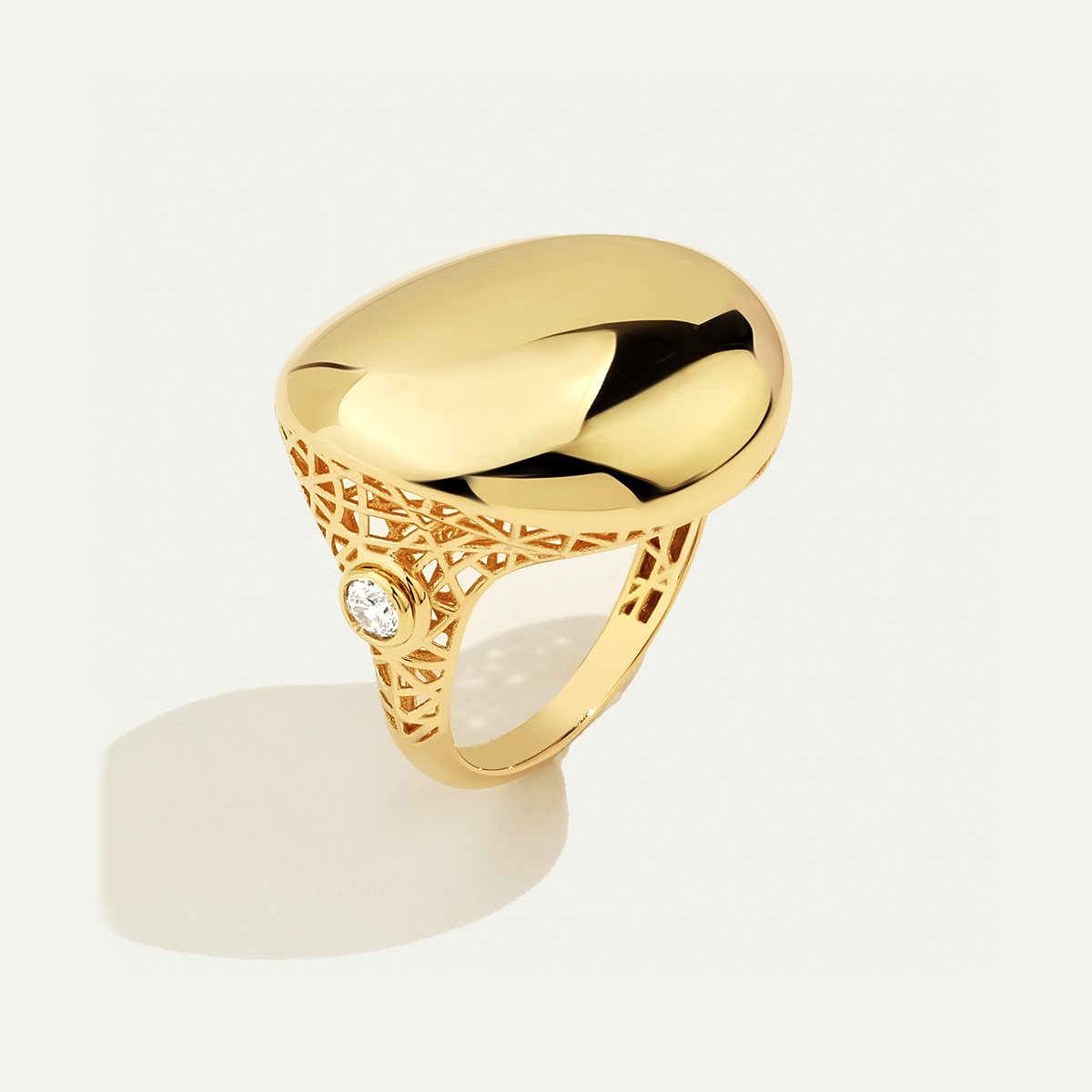 14 Ayar Altın Oval Formlu Ajurlu Yüzük