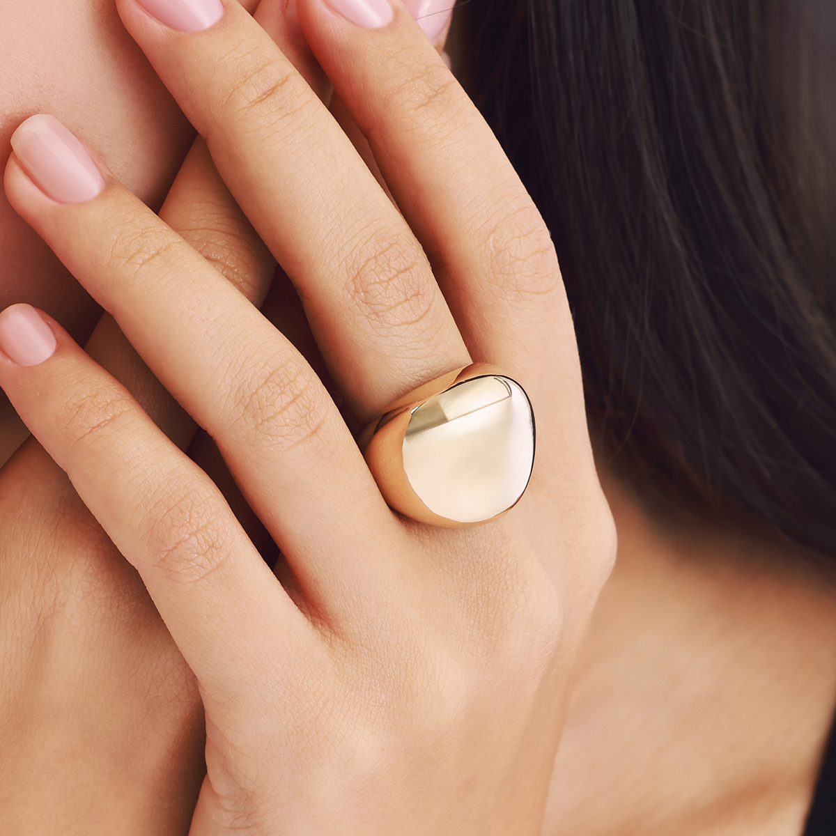 14 Ayar Altın Parlak Yüzeyli Geniş Form Yüzük