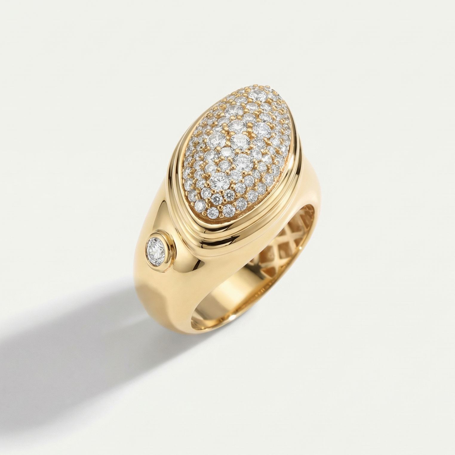 Oval formu ve parlak taş işlemeleriyle dikkat çeken bu 14 ayar altın yüzük, sofistike bir zarafet taşır. Özel günlerde ve davetlerde kullanabileceğiniz bu yüzük, klasik tasarımı modern dokunuşlarla yeniden yorumlar. Regold logolu özel kutusunda ve garanti belgesi ile sunulmaktadır.