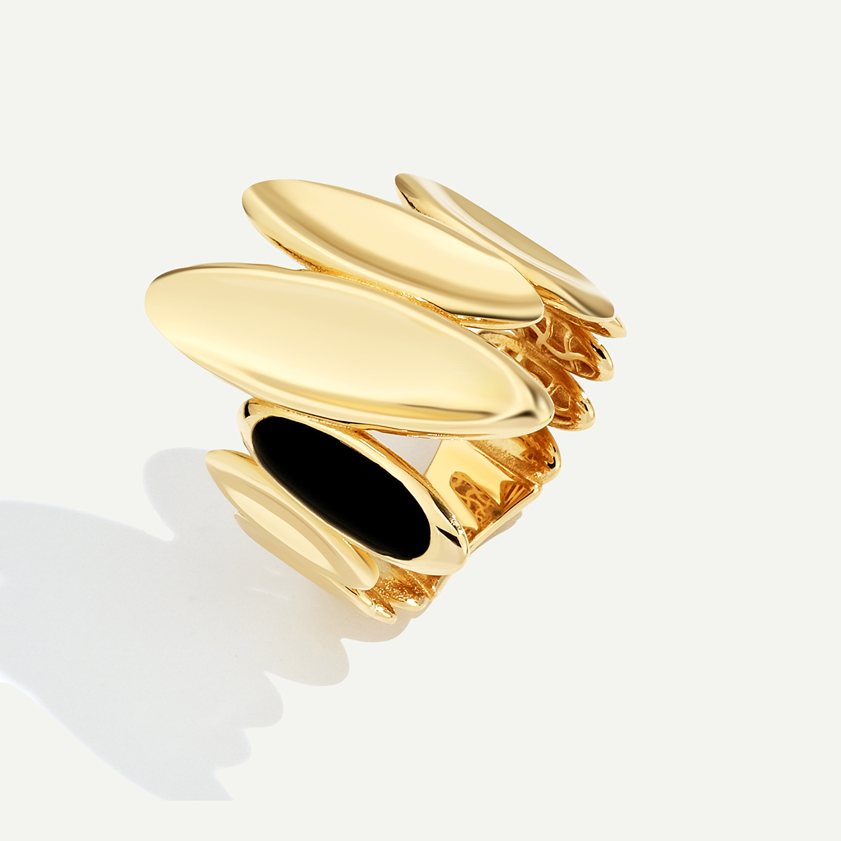14 Ayar Altın Siyah Mineli Yüzük, sıra dışı formu ve siyah mine detayı ile modern bir yorum sunuyor. Oval formların hareketli dizilimi, yüzüğe hem zarif hem de özgün bir hava katarken, mine dokusu altınla güçlü bir kontrast oluşturur. Günlük stilinizi farklılaştırmak veya özel davetlerde dikkat çekici bir aksesuarla öne çıkmak için ideal bir parça. Regold logolu özel kutusunda ve garanti belgesi ile sunulmaktadır.