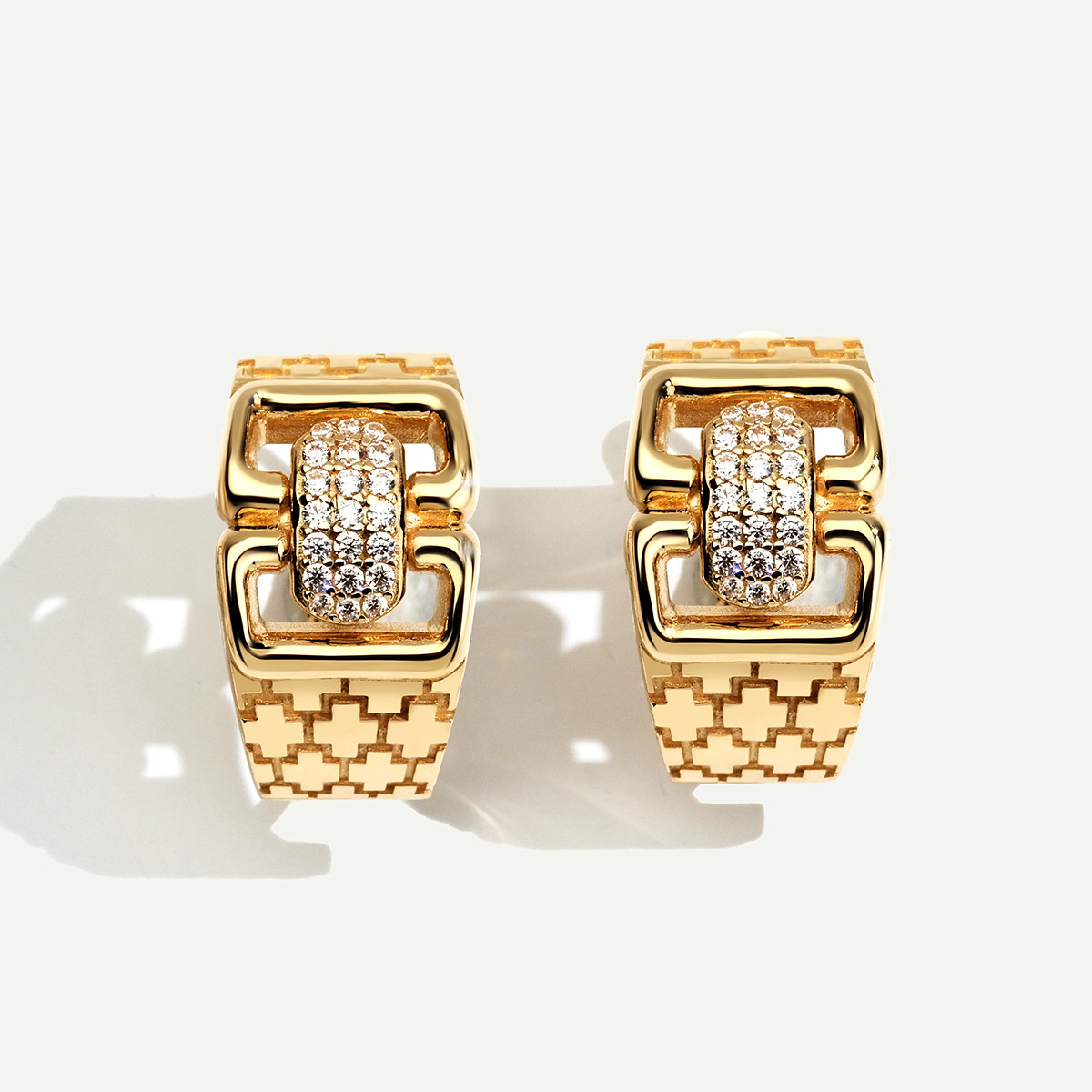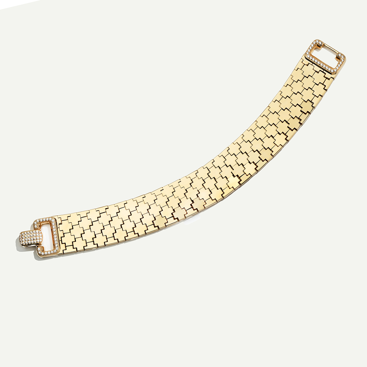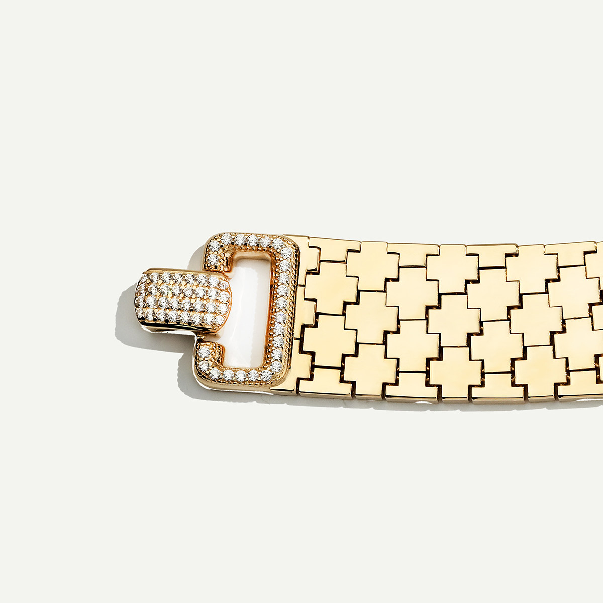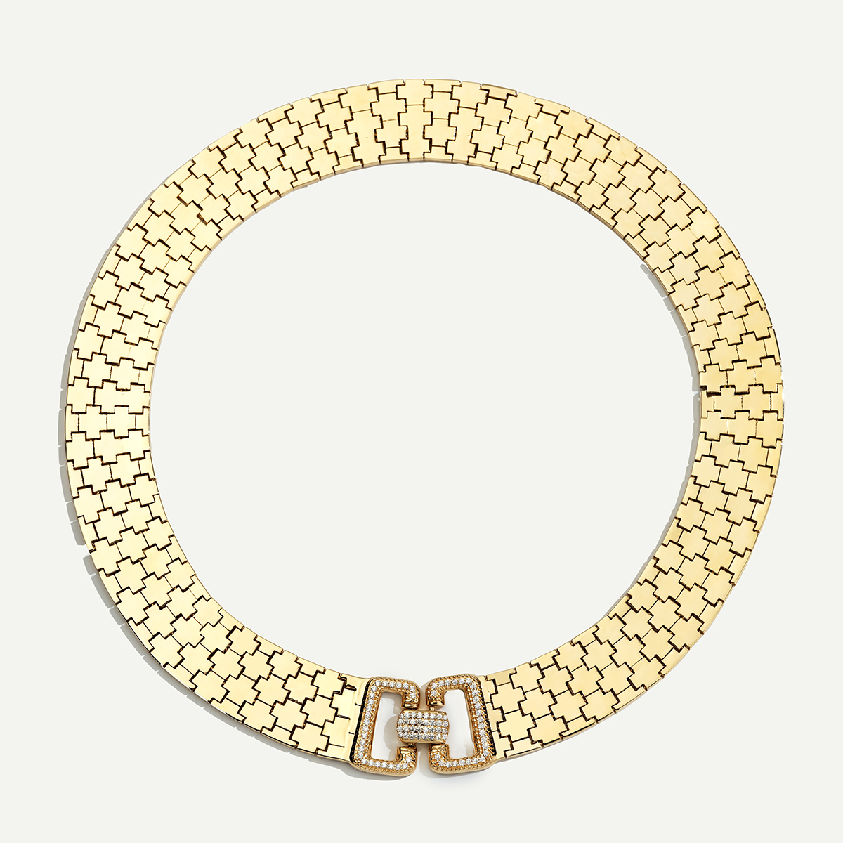 14 ayar altından üretilmiş olup zarafet ve güç hissini bir arada yansıtan oldukça iddialı bir tasarıma sahip. Set, kolye, küpe, bileklik ve yüzükten oluşuyor. Her parçada yer alan geniş yüzeyler, ayna parlaklığında işlenmiş metal dokusuyla ışıltılı bir görünüm sergiliyor. Taşlar, pürüzsüz altın yüzeyin üzerinde zarif bir kontrast oluşturarak ışığı en iyi şekilde yansıtıyor. Kolyenin boyun hattını takip eden kavisli yapısı, bilekliğin ve yüzüğün aynı dokuyu sürdürmesiyle birlikte setin bütünlüğünü tamamlıyor. Modern ve klasik çizgilerin dengelendiği bu tasarım, hem gündüz hem de özel davetlerde dikkat çekici bir duruş sunuyor. Regold logolu özel kutusunda ve garanti belgesiyle sunulmaktadır.
