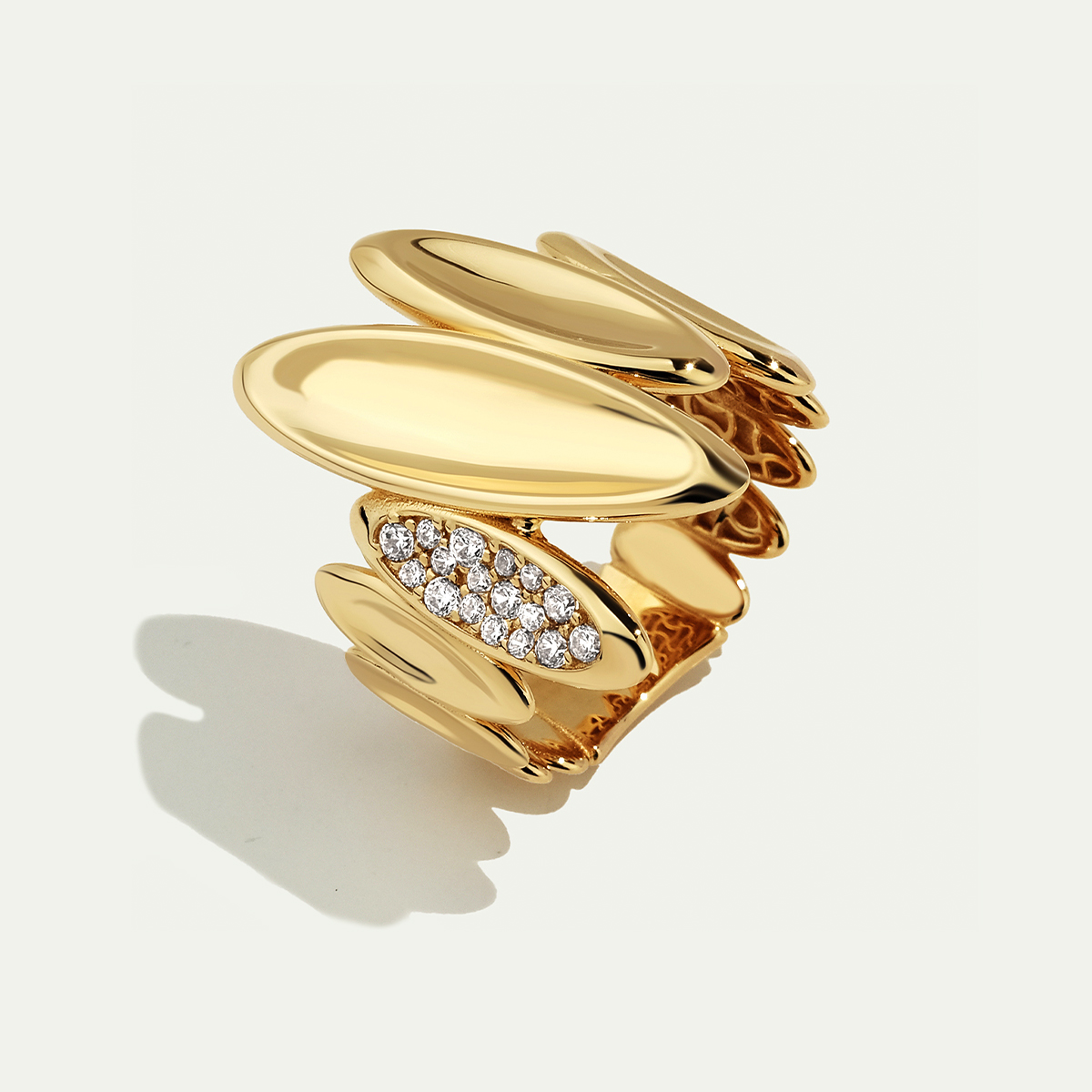 14 Ayar Altın Taşlı Yüzük, modern tasarım çizgilerini zarif detaylarla buluşturuyor. Oval formlu halkaların arasına yerleştirilen taşlar, yüzüğe sofistike bir ışıltı katıyor. Hem gündelik kullanımda hem de özel davetlerde şıklığınızı ön plana çıkaracak göz alıcı bir tasarıma sahiptir. Regold logolu özel kutusunda ve garanti belgesi ile sunulmaktadır.