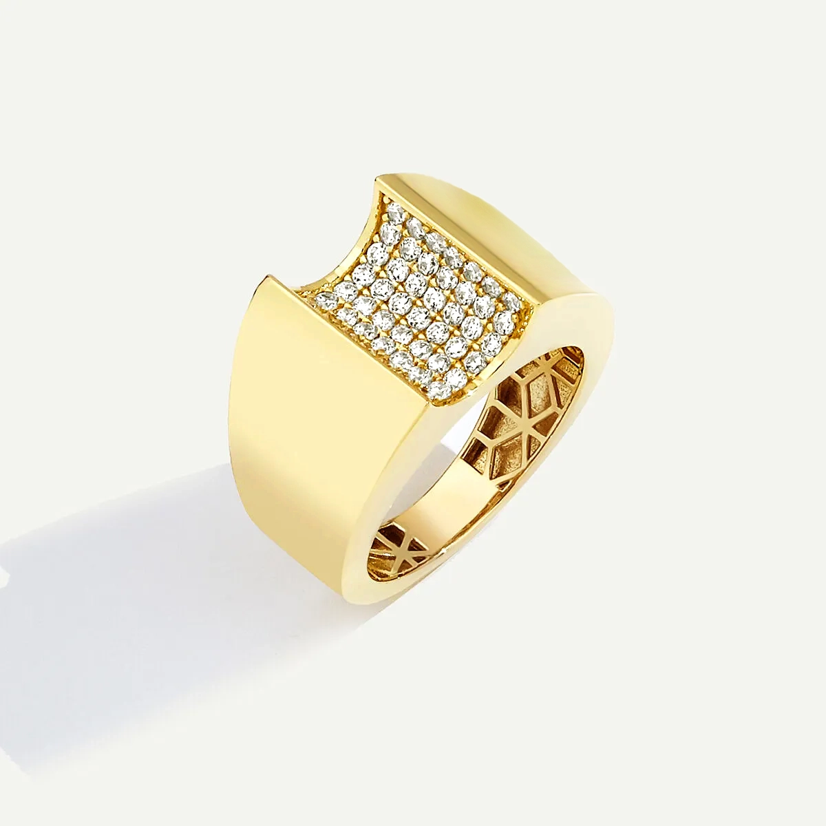 Modern tasarım çizgileriyle öne çıkan 14 Ayar Altın Taşlı Yüzük, parlak altın yüzeyi ve ortasında yer alan taşlı detaylarıyla sofistike bir görünüm sunuyor. Pürüzsüz altın dokusu, taşların ışıltısıyla birleşerek tasarıma zarif bir kontrast katıyor. Hem gündelik kombinlerde hem de özel davetlerde stilinizi zarifçe tamamlayan bu parça, şıklığı ve iddiayı bir arada taşıyor. Regold logolu özel kutusunda ve garanti belgesi ile sunulmaktadır.