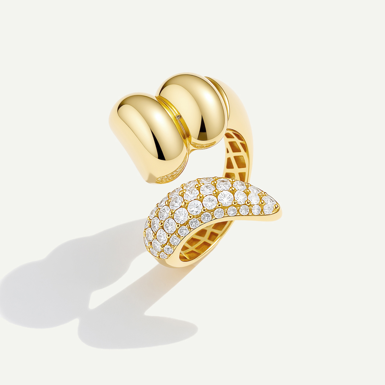 Minimal formlu ve şık detaylarla tasarlanmış bu 14 ayar altın yüzük, pırlanta görünümlü taşlarla ışıltı kazanıyor. Hem zarif hem de dikkat çekici yapısıyla her stile uyum sağlar. Regold logolu özel kutusunda ve garanti belgesiyle sunulmaktadır.