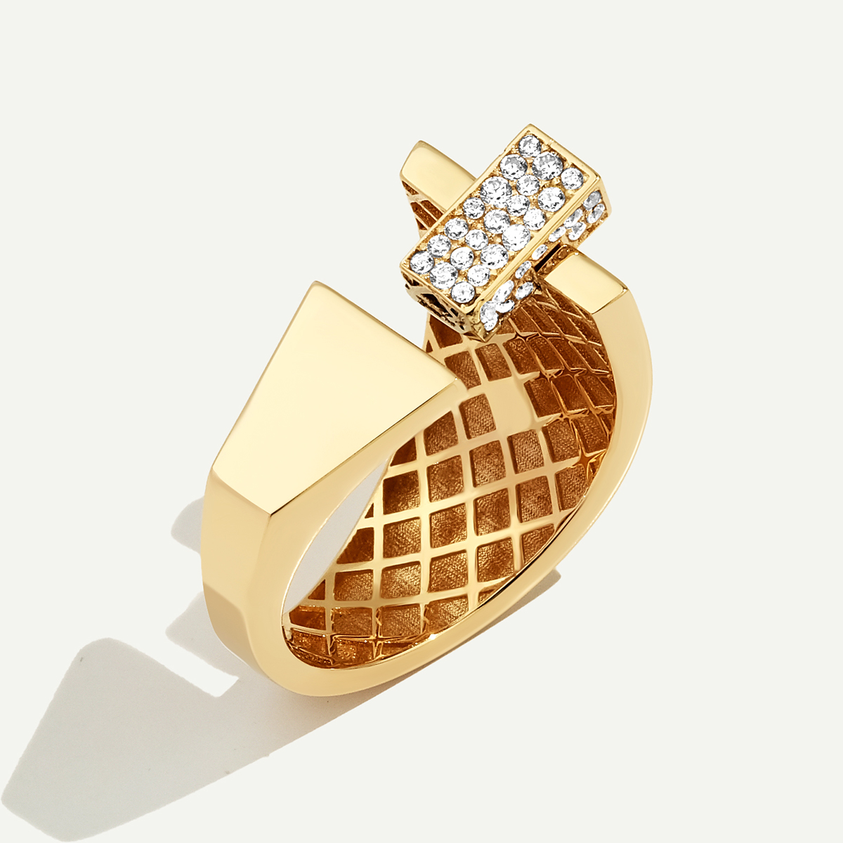 Modern çizgilerin cesur yorumuyla tasarlanan 14 Ayar Altın Taşlı Yüzük, 14 ayar altının sıcak ışıltısını geometrik formun güçlü ifadesiyle birleştiriyor. Üst kısmındaki taşlı detay, tasarıma zarif bir ışıltı katarken, iç yüzeydeki desen işçiliğiyle incelikli bir ustalık sergiliyor. Günlük hayatta stilinizi modern bir dokunuşla tamamlamak ya da özel günlerde güçlü bir ifade yaratmak için zamansız bir seçenek sunuyor. Regold logolu özel kutusunda ve garanti belgesi ile sunulmaktadır.