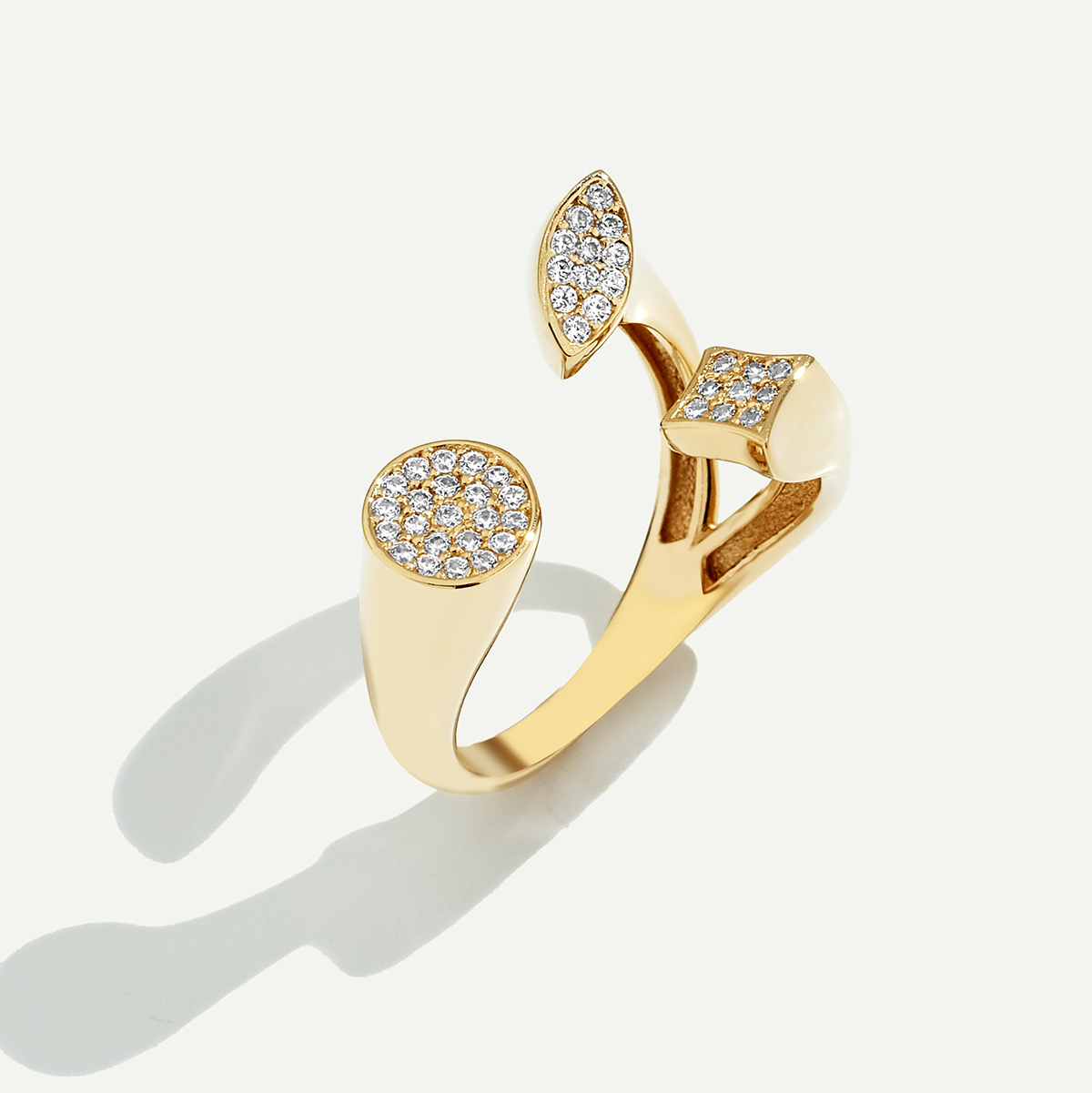 14 Ayar Altın Üç Detaylı Taşlı Yüzük
