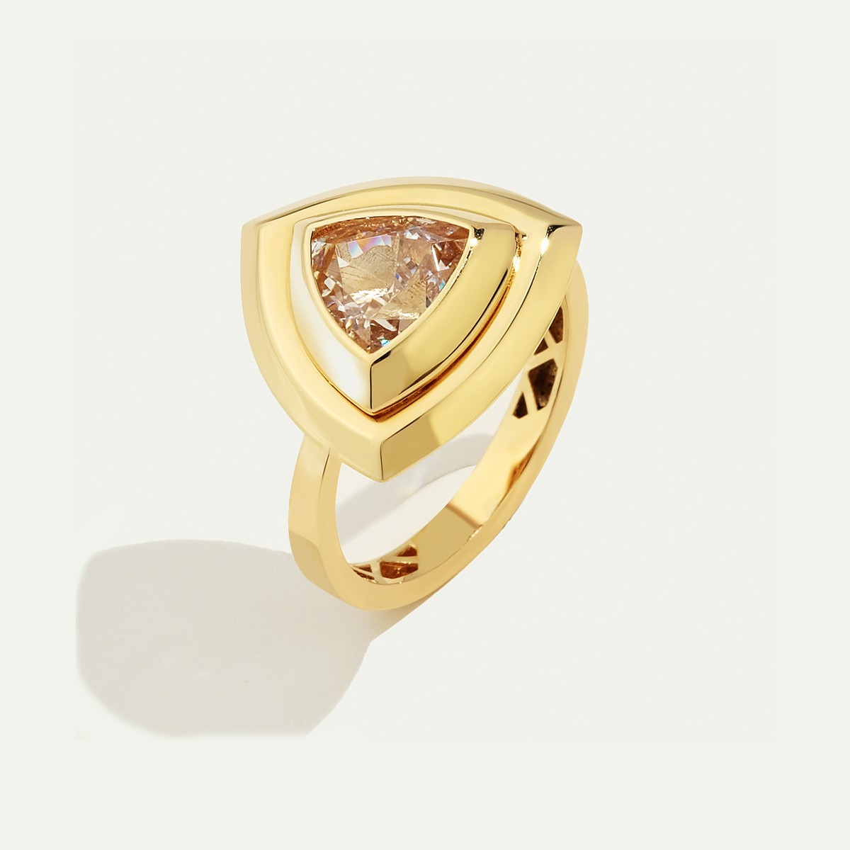 14 Ayar Altın Üçgen Formlu Şampanya Rengi Taşlı Yüzük