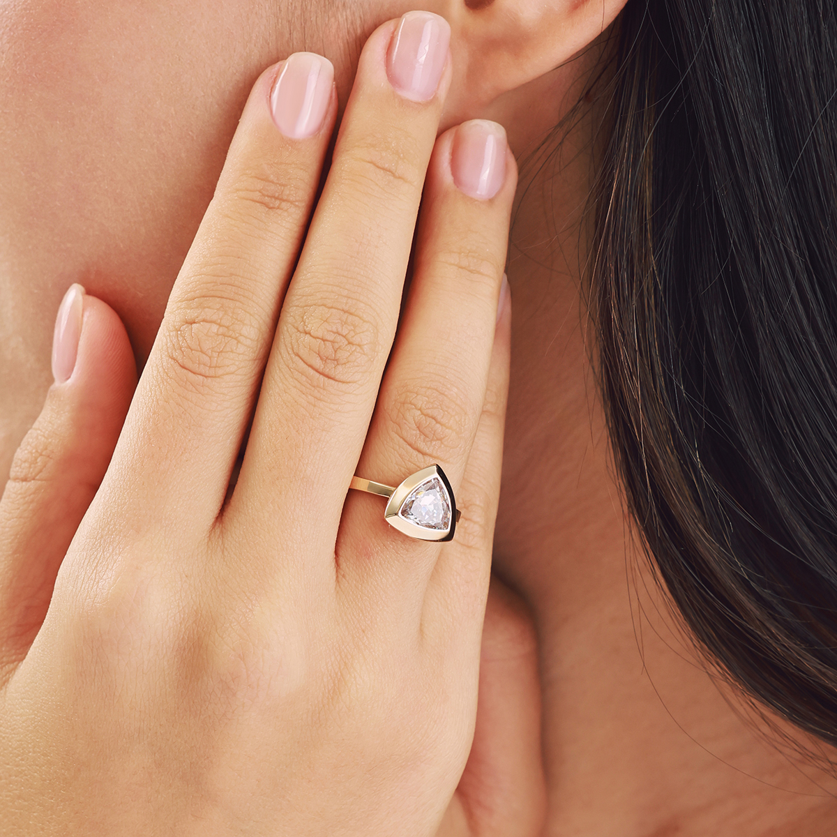 14 Ayar Altın Üçgen Taşlı Yüzük