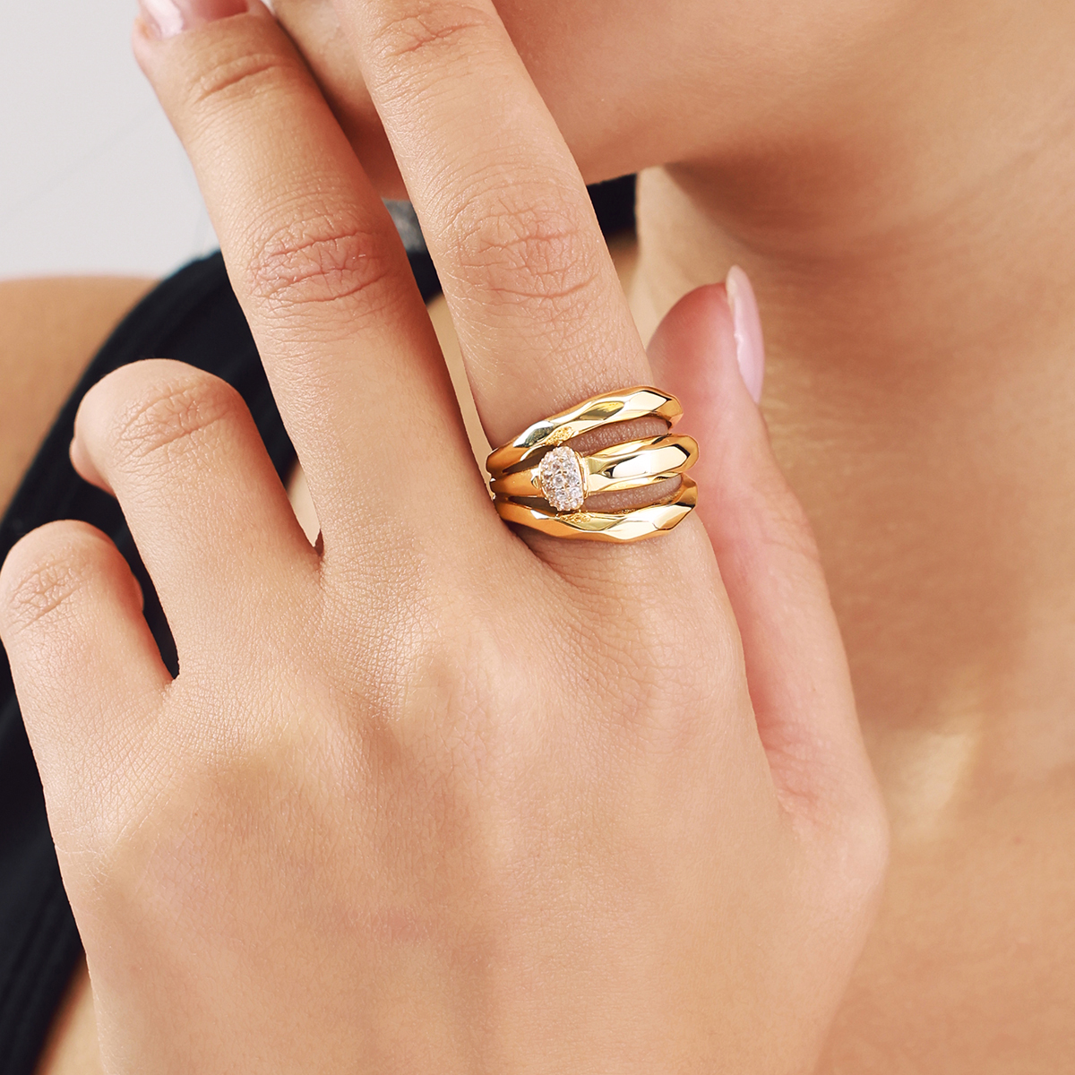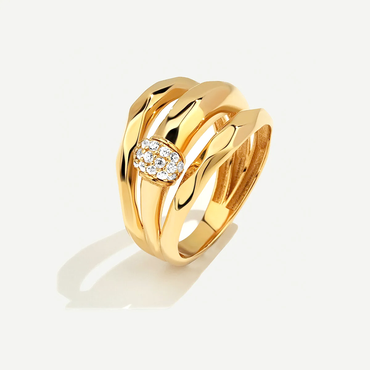 14 Ayar Altın Üçlü Formlu Taşlı Yüzük