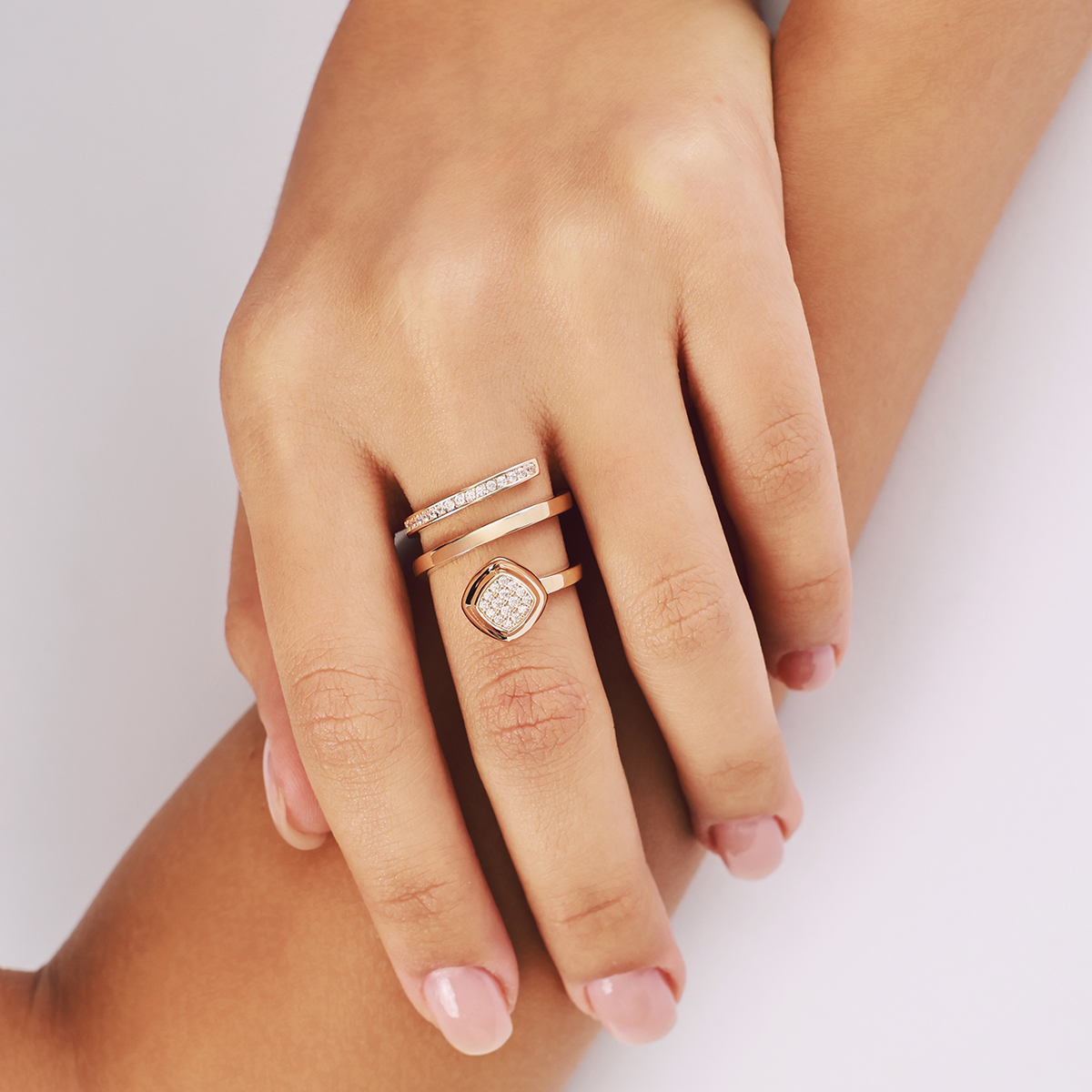 14 Ayar Altın Üçlü Görünümlü Kare Formlu Taşlı Yüzük