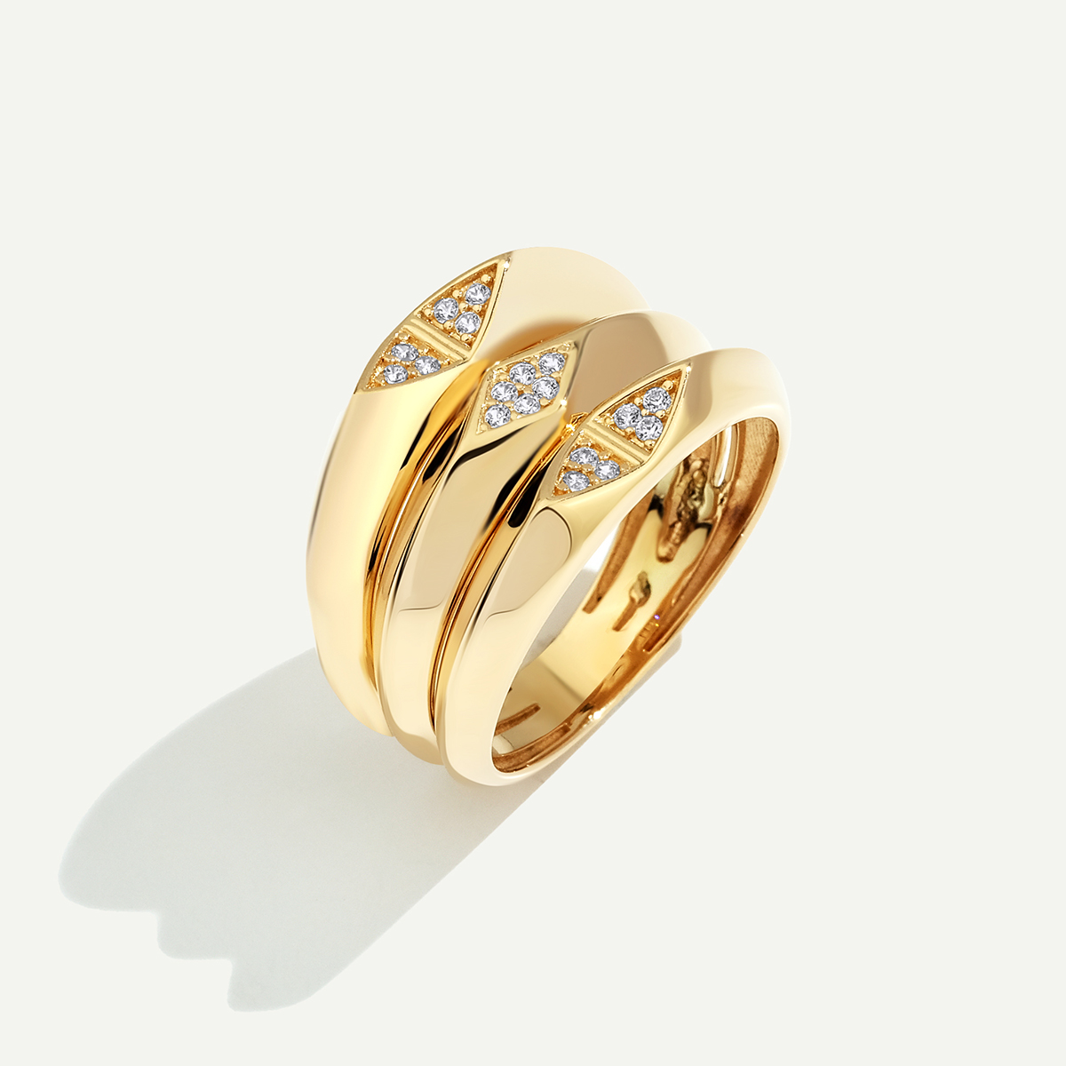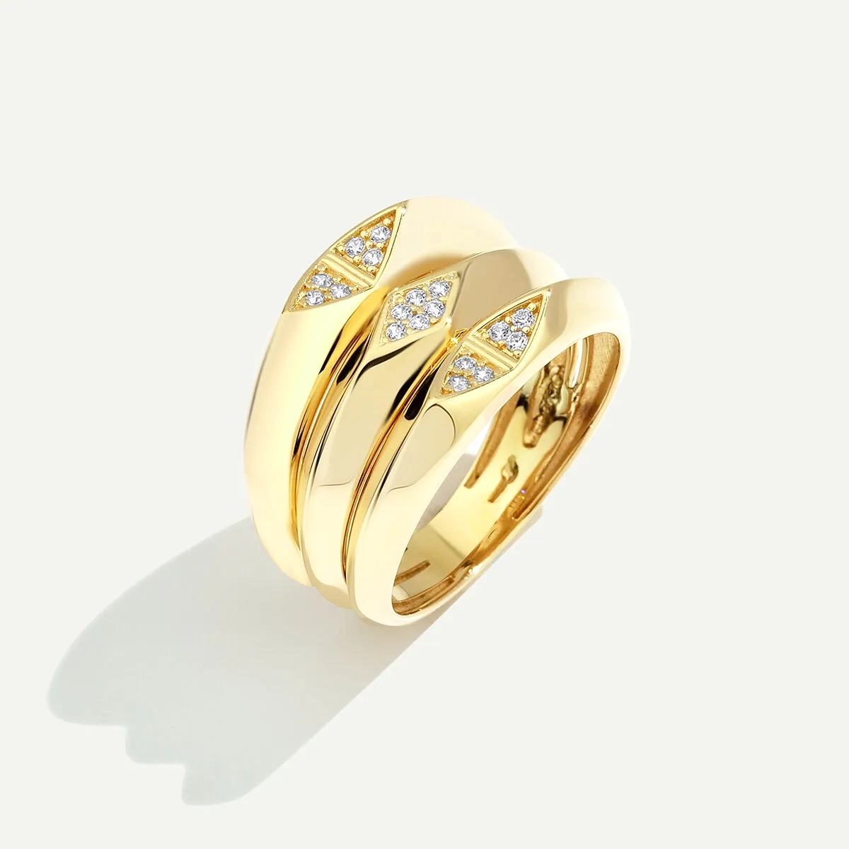 14 Ayar Altın Üçlü Görünümlü Taşlı Yüzük