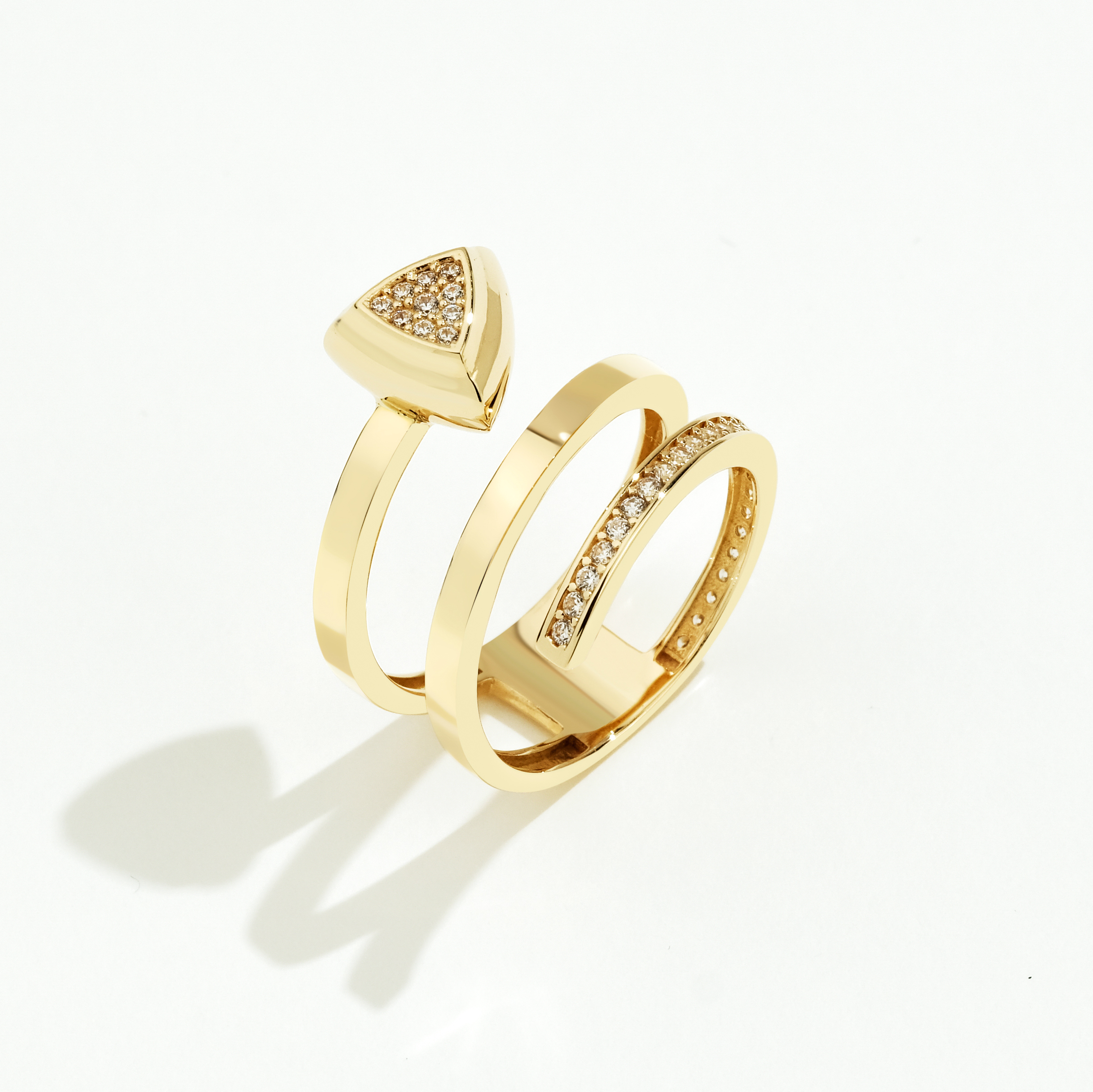 14 Ayar Altın Üçlü Görünümlü Üçgen Formlu Taşlı Yüzük