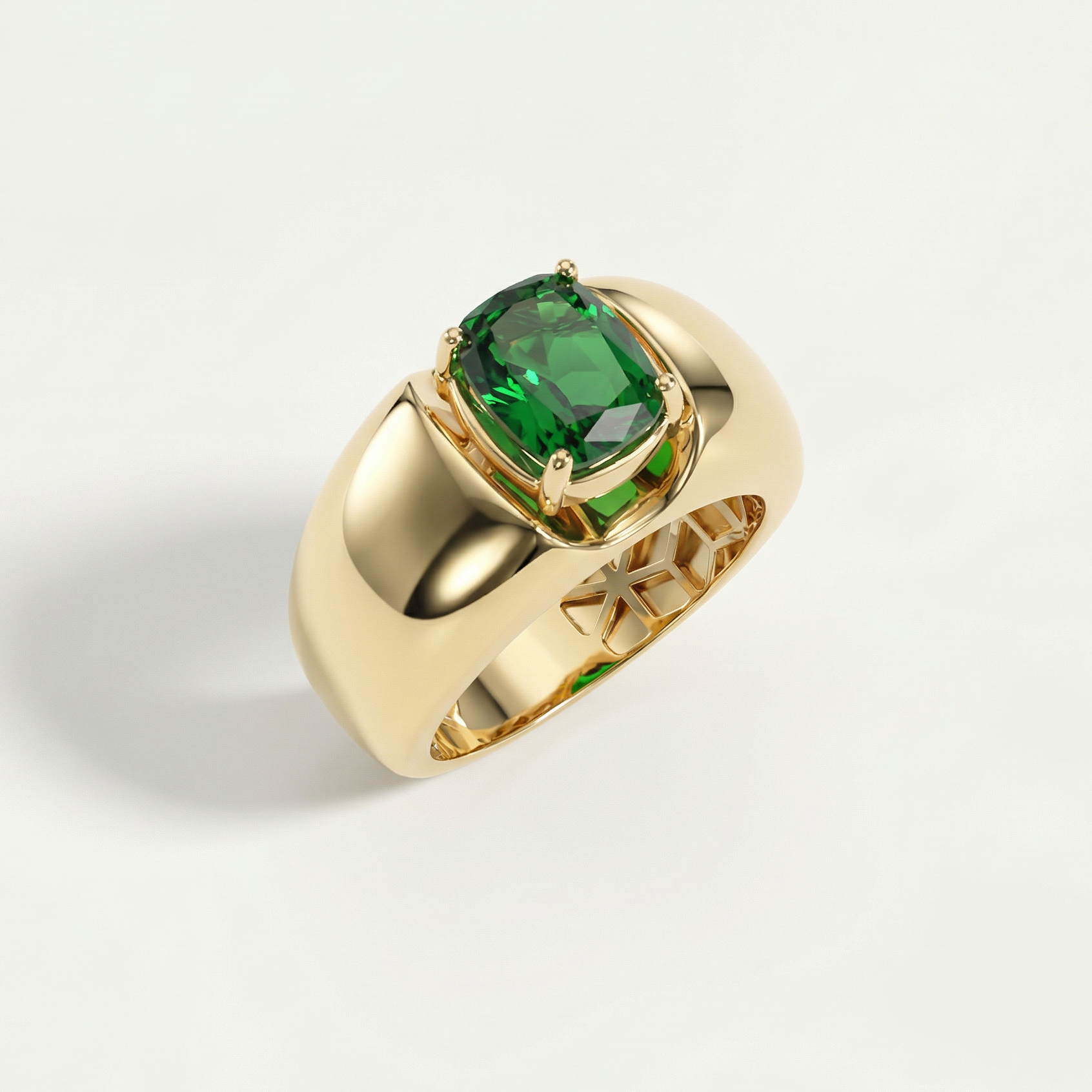 14 Ayar Altın Yeşil Taşlı Yüzük