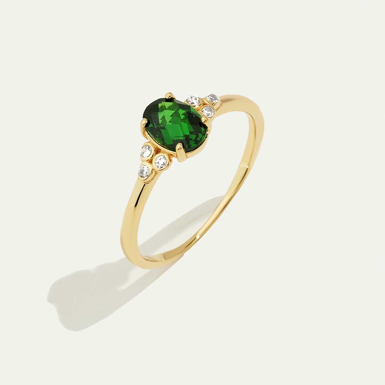 14 Ayar Altın Yeşil Taşlı Yüzük