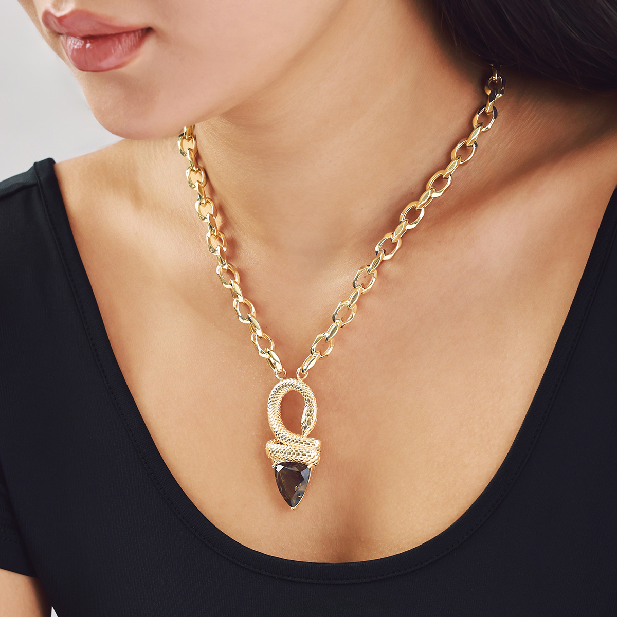 14 Ayar Altın Yılan Figürlü Kahverengi Taşlı Kolye