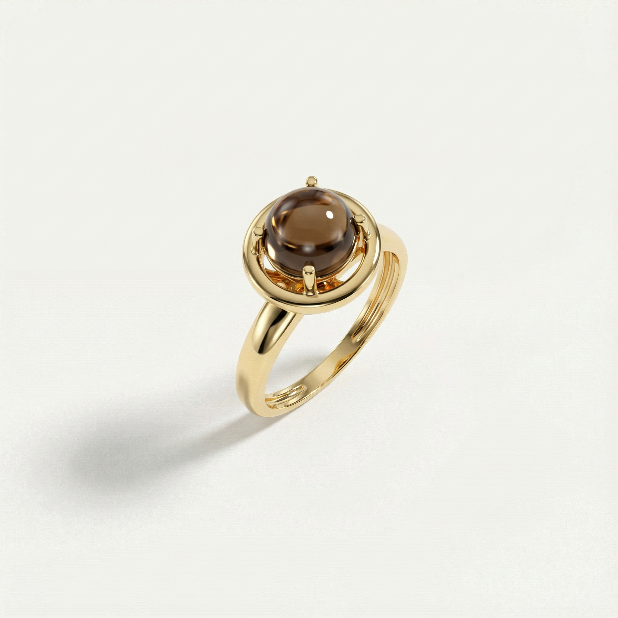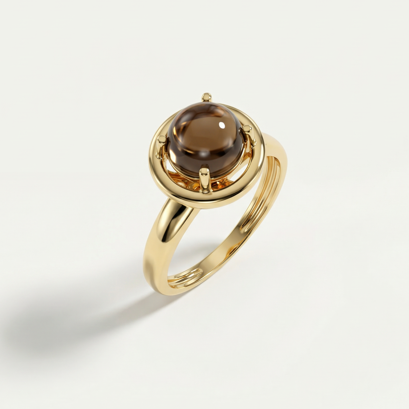 14 Ayar Altın Yuvarlak Kahverengi Taşlı Yüzük