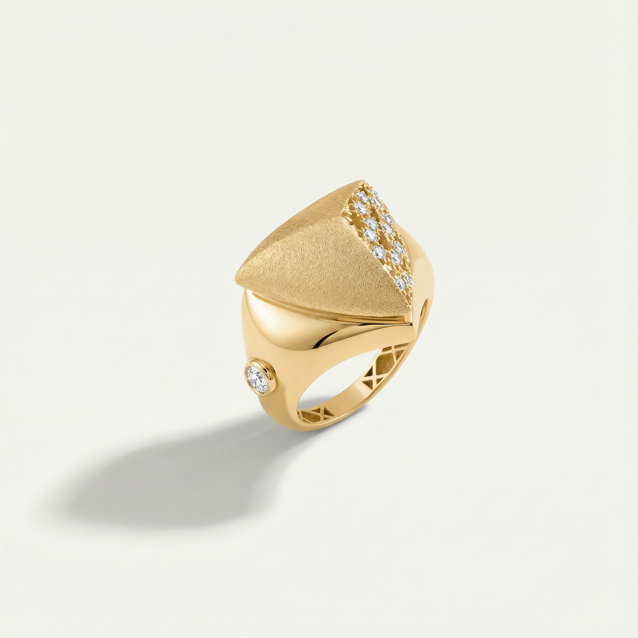 14 Ayar Altın Yüzük, yüzeyindeki özel dokulu altın işçiliği ve kenarındaki küçük taş detayıyla dikkat çekiyor. Klasik formları modern dokunuşlarla birleştiren tasarımı, günlük stilinizi güçlendirirken aynı zamanda şıklığınızı tamamlıyor. Regold logolu özel kutusunda ve garanti belgesi ile sunulmaktadır.